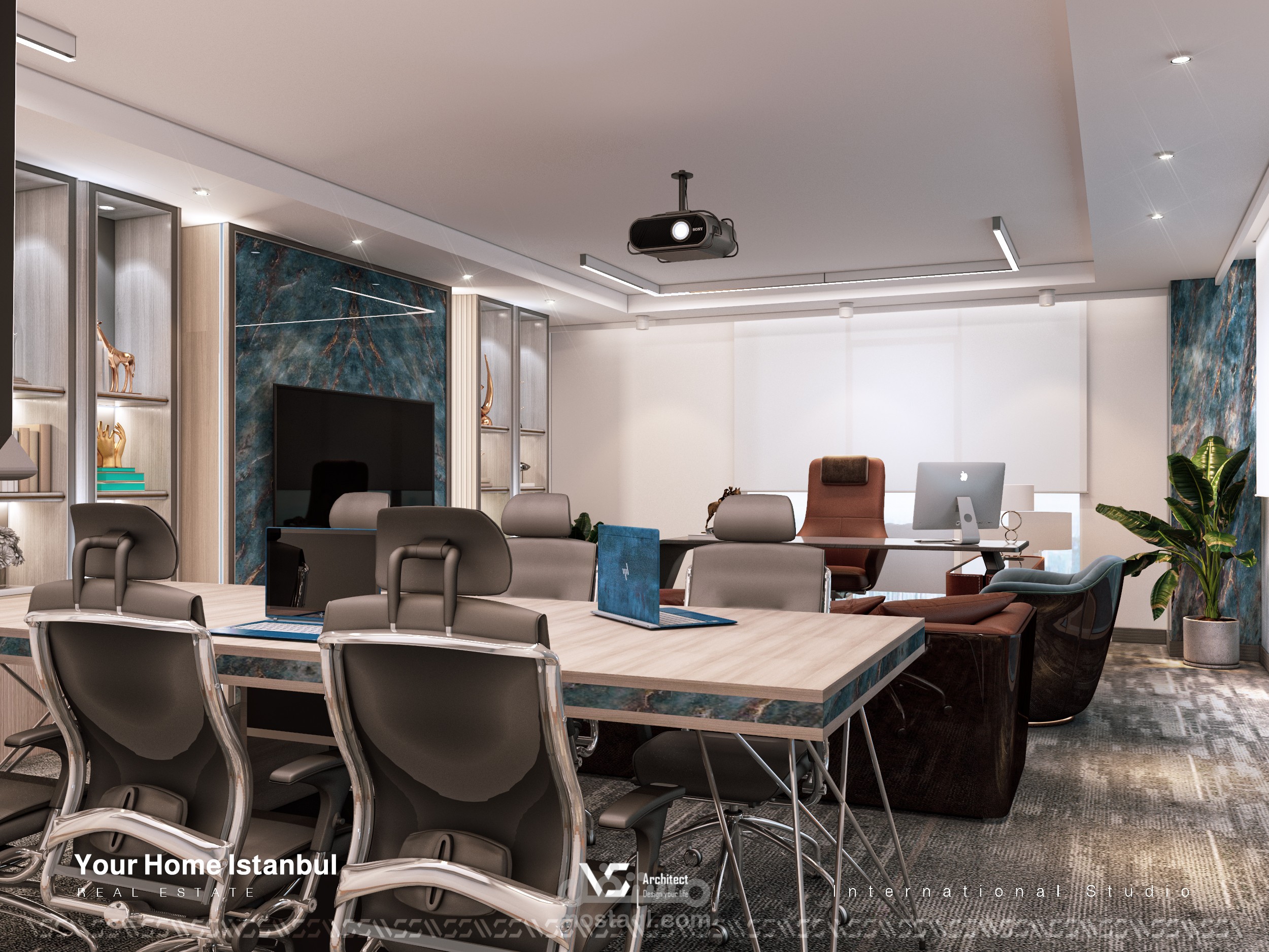 Designing a management room in a real estate company is a crucial task as it is the place where important decisions are made, deals are finalized, and clients are welcomed. The room must be designed in a way that reflects the company’s values and culture creates a professional and comfortable atmosphere, and enables the smooth flow of communication and interaction.