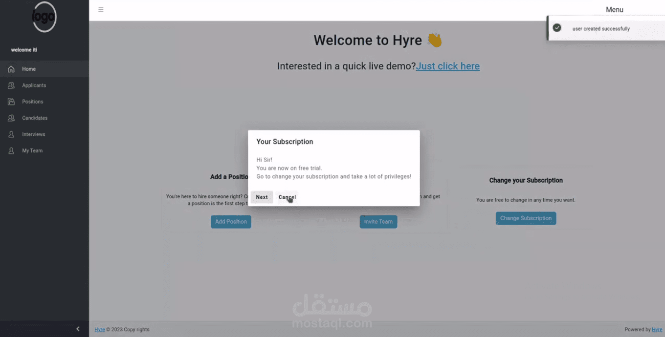 عبارة عن software as a service اداة لمساعدة الشركات فى نظام الانترفيوهات حتى يكون سهل وسلس بدون تاخير فى الوقت لعملة ال screening كل شئ automated كل ما عليك هة ضغط زر لعمل form للتقديم على الوظيفة اللى الشركة متاحها ومن ثم تبدا فى ضغط زر على كل شخص قدم لهذه الوظيفة اما ان تمسحه او تحدد له معاد للانترفيو ومن ثم يتم ارسال ايميل له بتفاصيل المقابلة ومعادها حتى يصل الى اخر انترفيو الشركة تحددها كل شئ automated