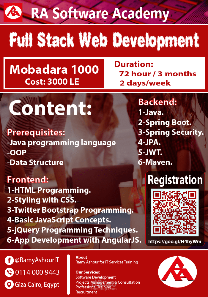بوستر فلاير لمبادرة في مجال البرمجيات يضم تفاصيل المبادرة مع معلومات الاتصال و صور معبرة و شعار الاكاديمية