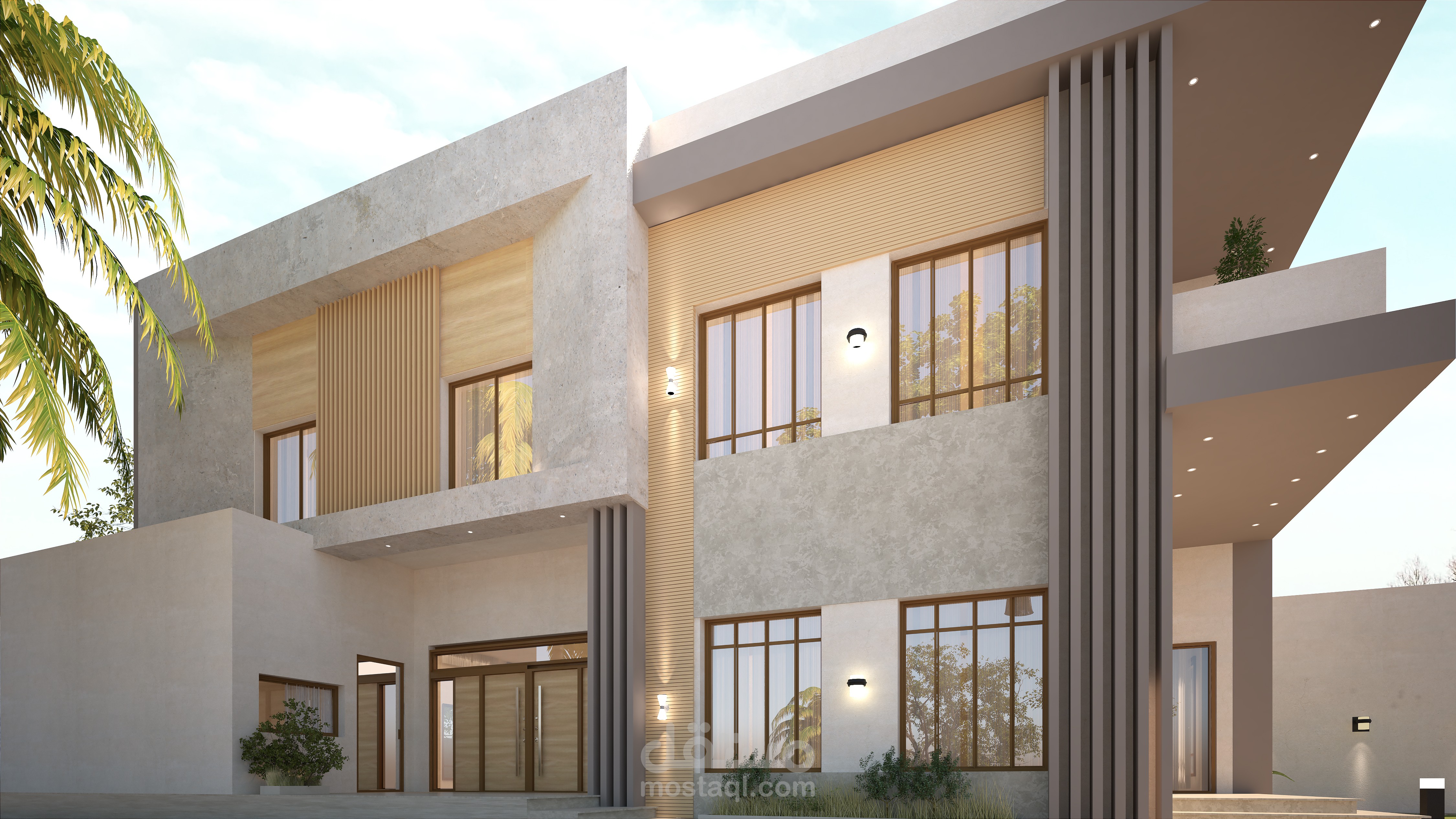 تصميم واجهة خارجيه لفيلا على الطراز المودرن باستخدام احدث برامج التصميم الحديثه 3dmax & Autocad & Photoshop & Illustratur