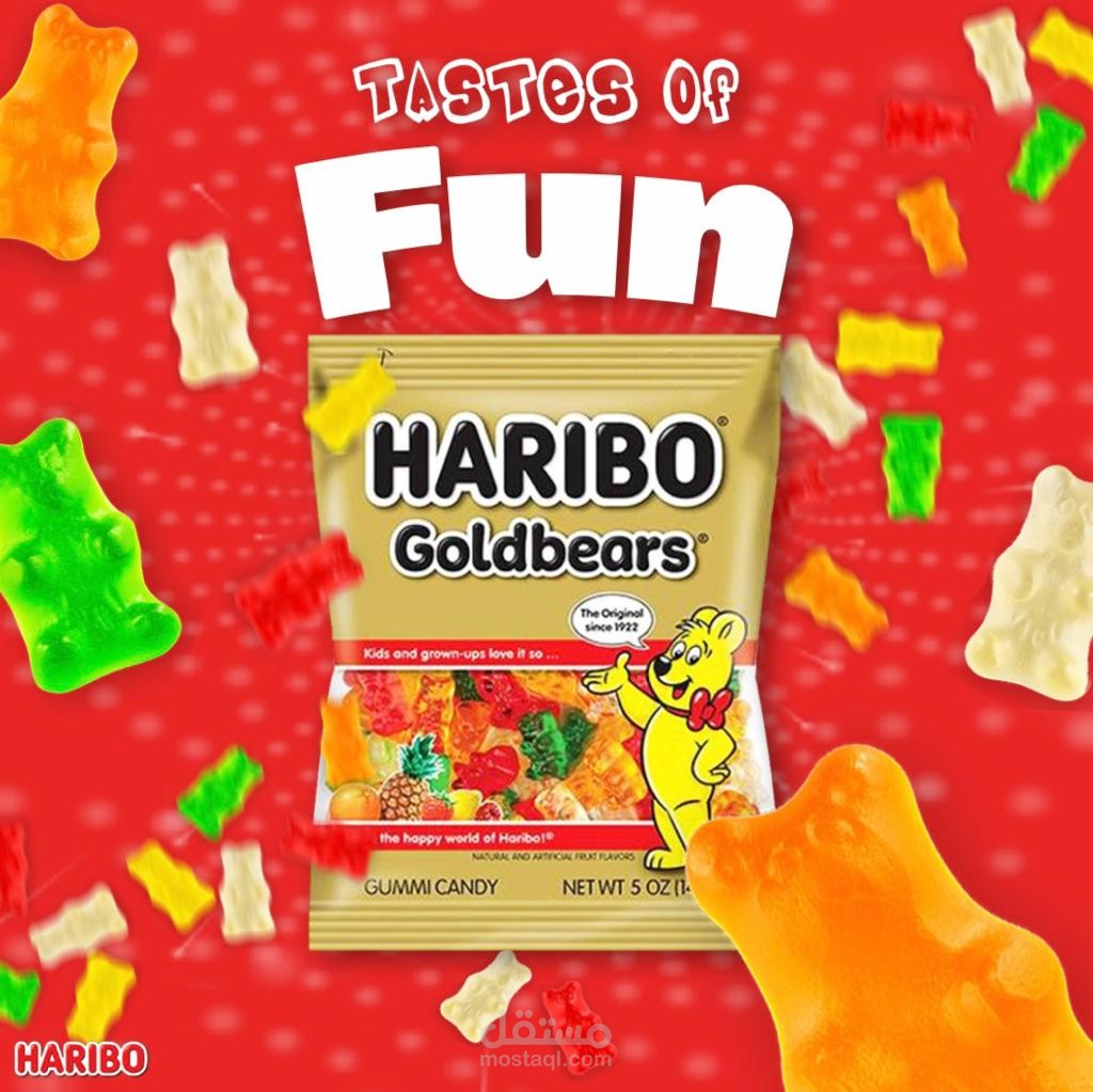 تصميم اعلان لHARIBO gummy bears باستخدام برنامح Photoshop.