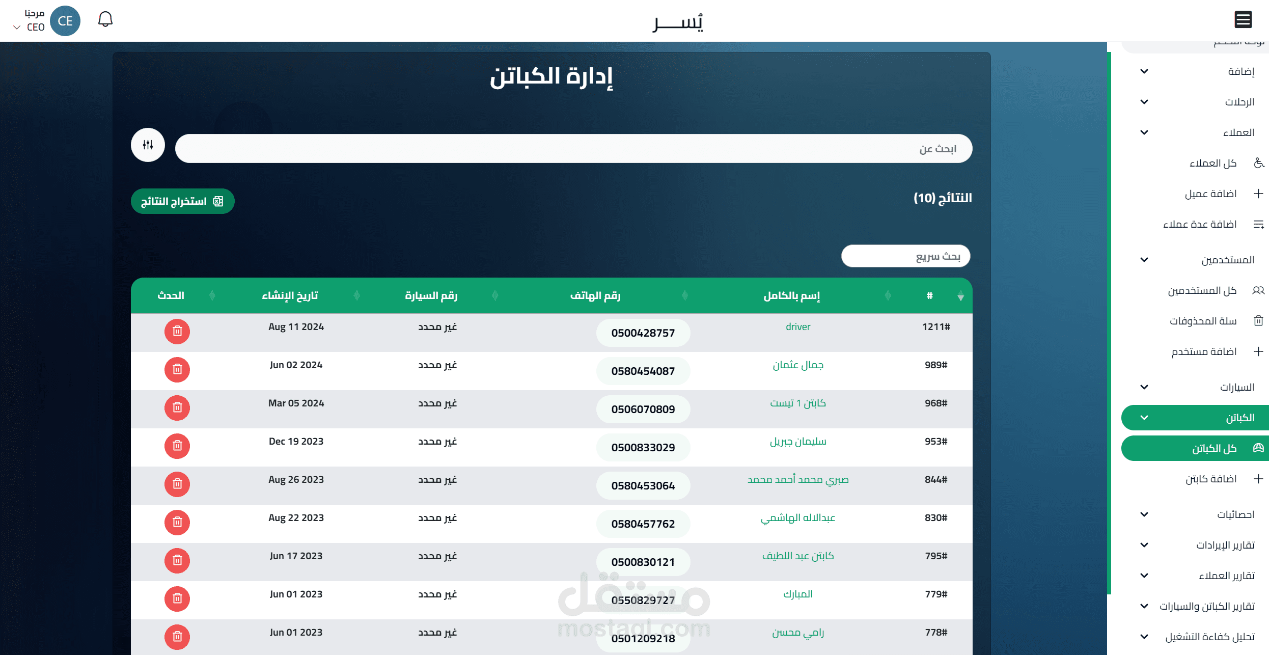 (سائق):- له صلاحية استلام طلبات الرحلات و قبولها او رفضها ولوحة تحكم خاصة به لادارة كافة رحلاته المستلمة و المنجزة وبامكانه ارفاق كافة تفاصيل بيانات الشخصية مثل رقم الهوية و صورة الشخصية لإثبات ملكيته ومن ثم ربطه مع السيارة الخاصة به في عمليات التوصيل او حتي عدة سيارات.