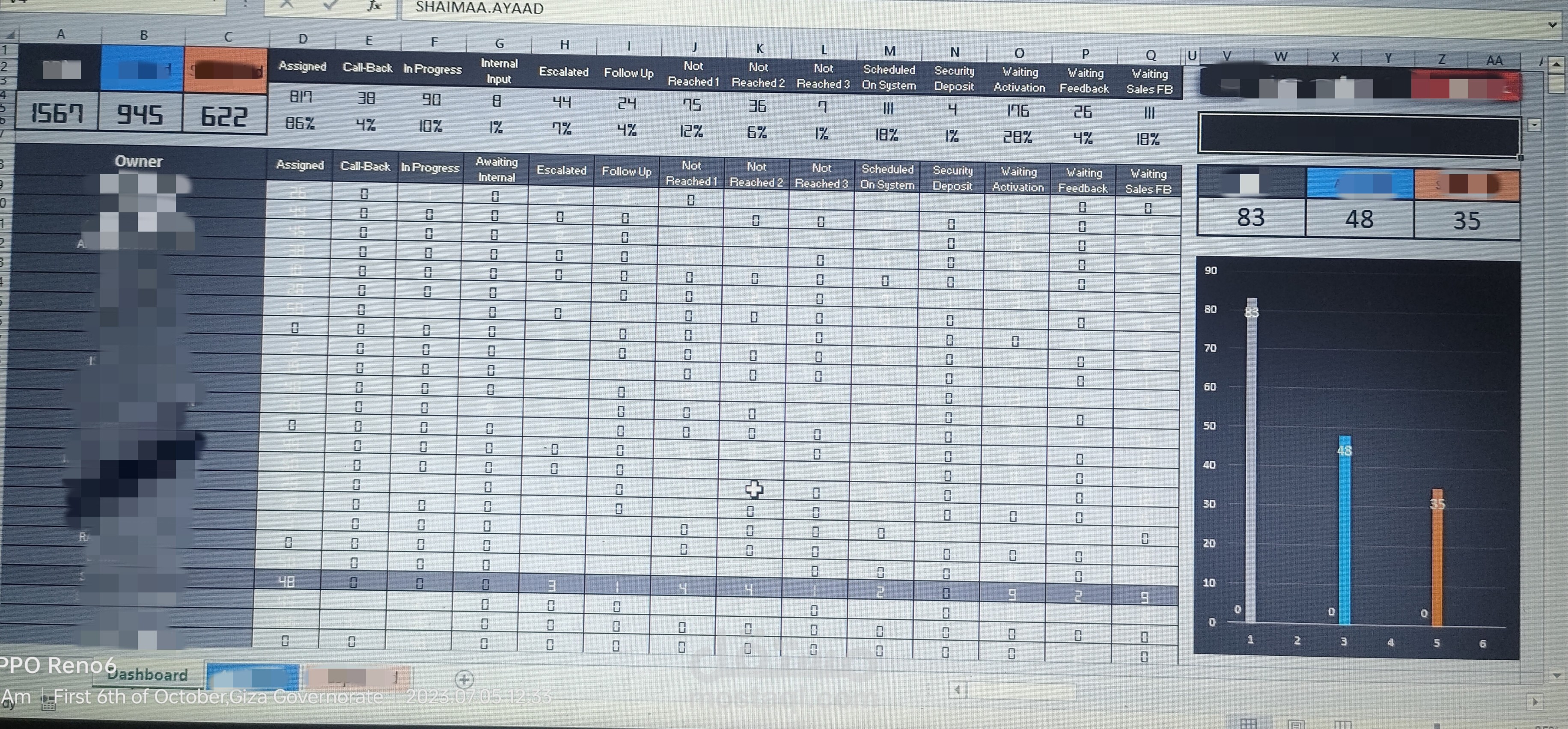 Dashboard for daily performance to measure the completion rate and determine the type of problem