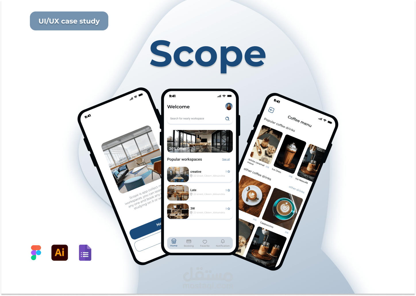 تصميم يتضمن البحث عن اماكن المخصصه للعمل والمذاكره