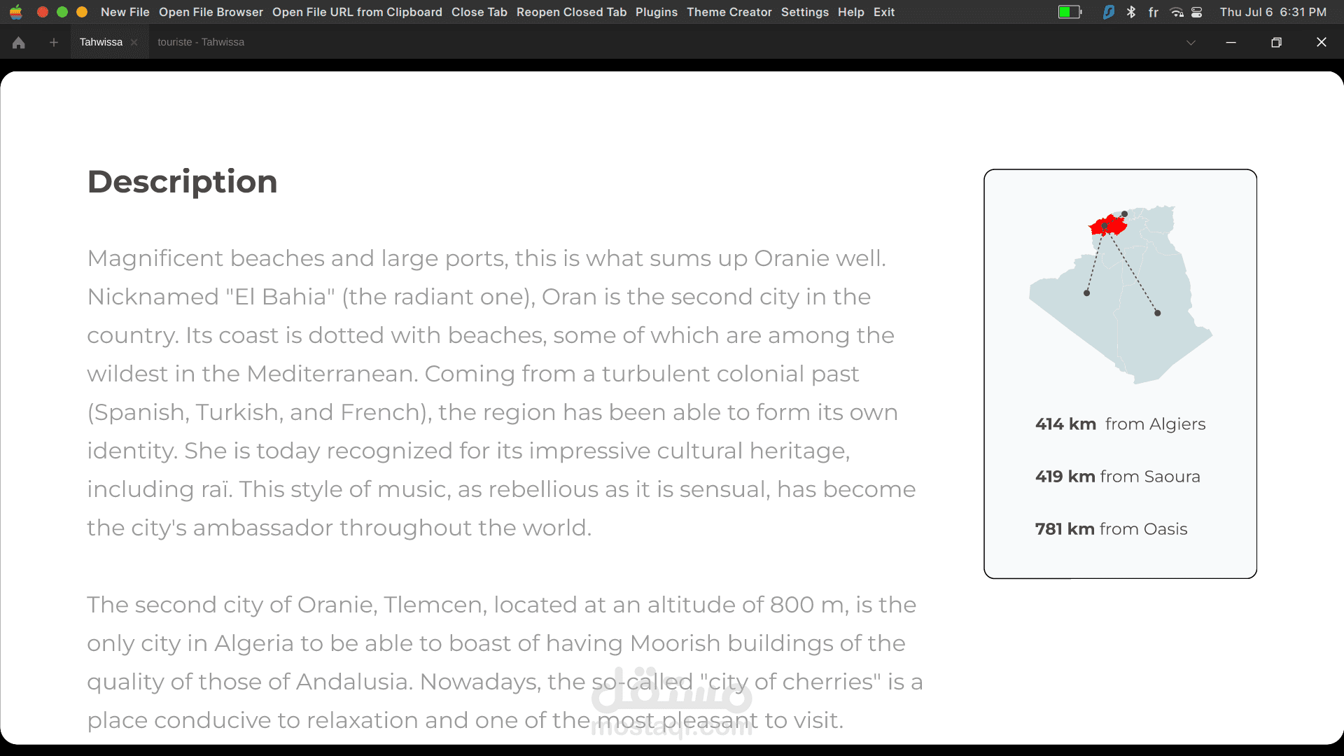 هذا العمل يعتبر أحد أحب الأعمال الي, الا انه مشروع لم أكد أنتهي منه, هي منصة ترويجية للسياحة بوطني الجزائر.