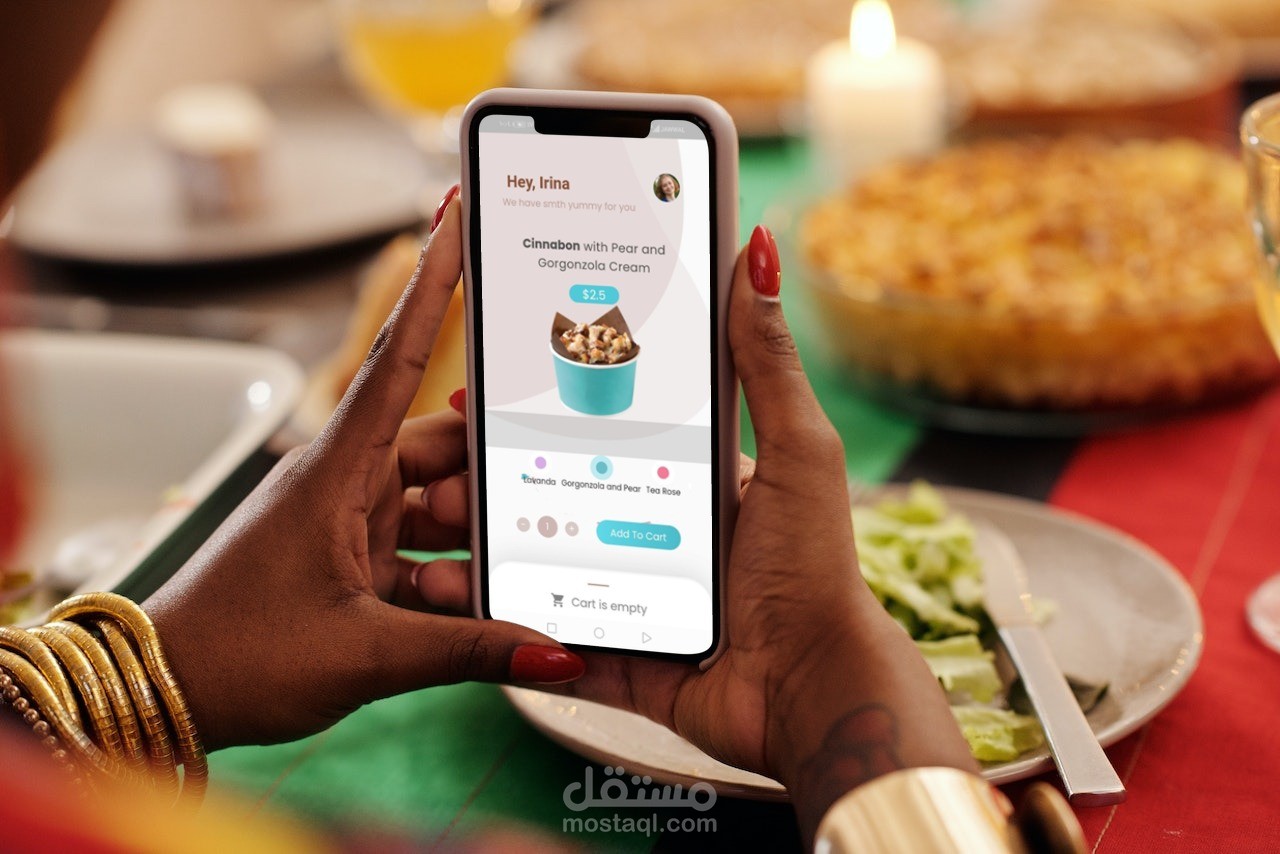 تم إنشاء صفحات لتطبيق متجر حلويات وهو مطابق لتصميم التطبيق في فيجما