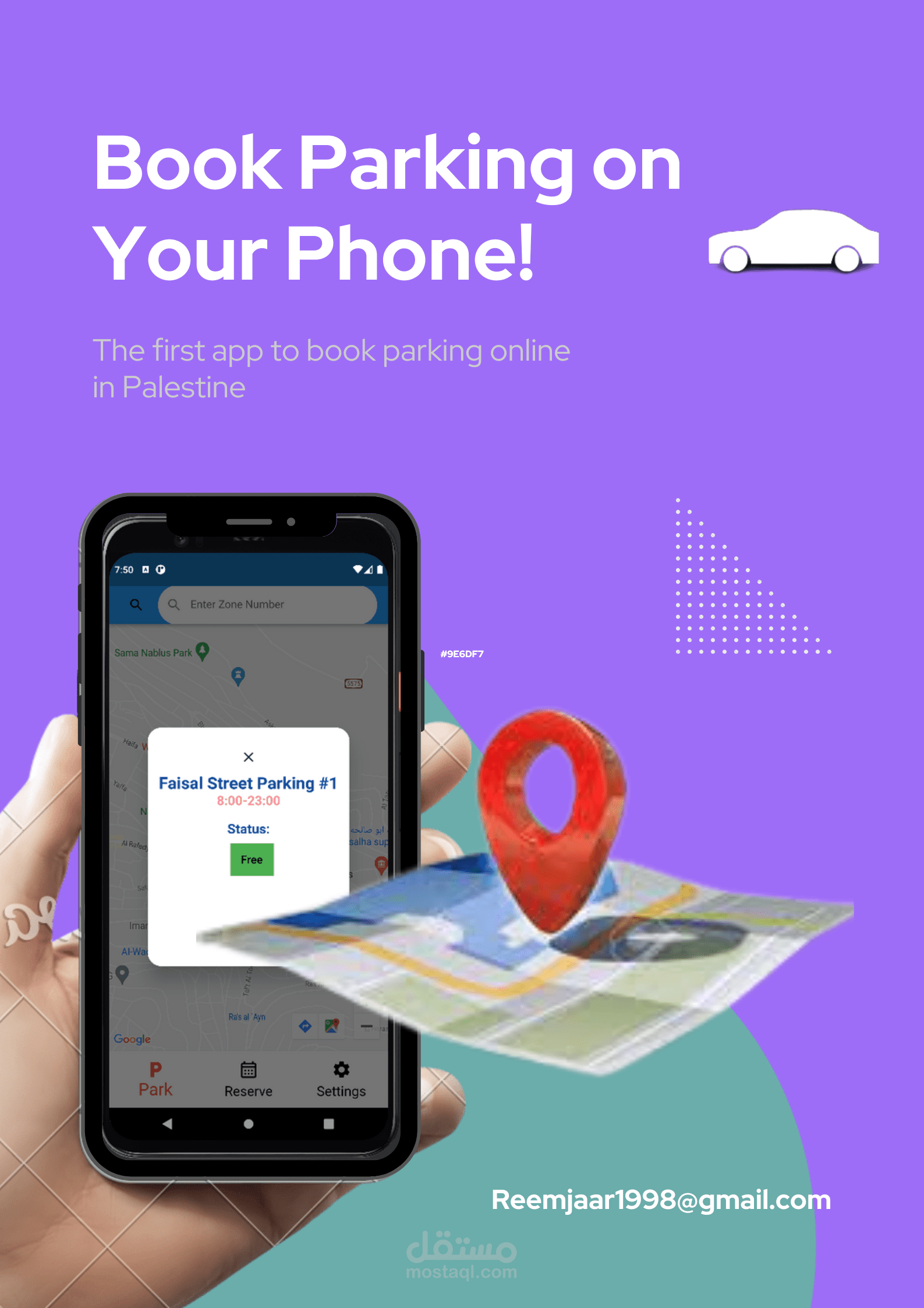 تم برمجة تطبيق يعمل على حجز موقف سيارات عن بعد وربطه مع قاعدة البيانات MongoDb , واستخدام Firebase في برمجة الدردشة والإشعارات , وعرض خرائط جوجل في التطبيق