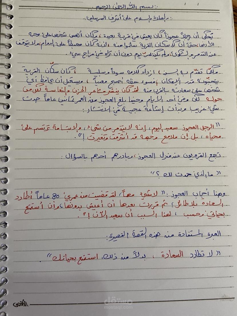 كانت قصة قصيرة عن رجل عجوز . وهذه القصة للعبرة لان لها عبرة جميلة جدا الا وهي نصيحة للانسان الذي يطارد السعادة ان يترك مطاردتها ويستمتع بحياته .