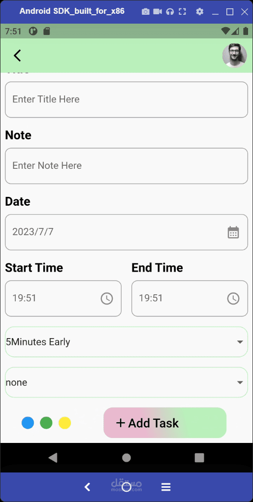 هذا المشروع عبارة عن تطبيق لتنفيد المهام وقد تم العمل عن طريق flutter و dart وتم استخدام getx و sqflite و datepicker