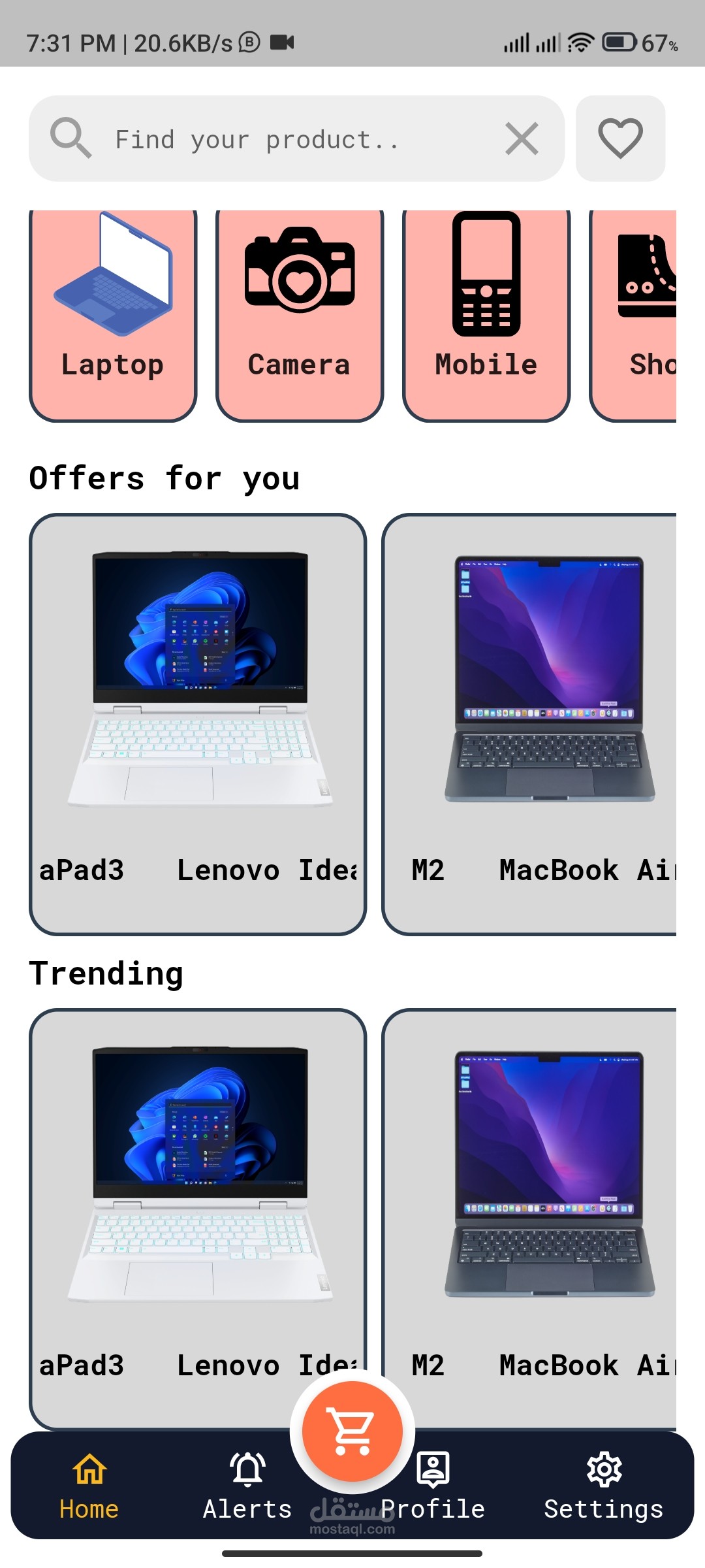 متجر إالكتروني به 6 مجالات مختلفة للمنتجات ملابس ولابتوبات و هواتف ذكية وكاميرا وفساتين نسائي وقابل للزيادة والتعديل.