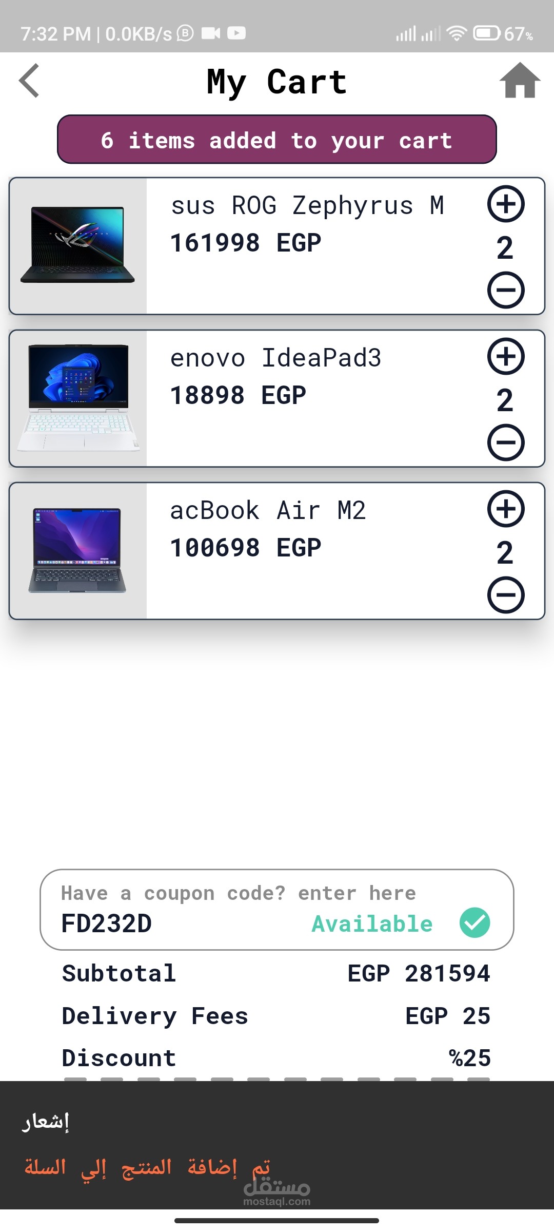 البرنامج قابل للتغيير كتصميم وكذلك متعدد النفع من الممكن ان يصبح متجر الكتروني لمطعم او اي مجال شراء الكتروني اخر ومازال جاري العمل علي تطبيقي الدليفري والادمن الخاصين به .