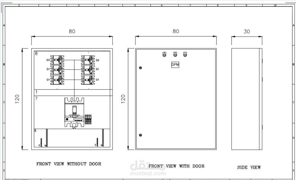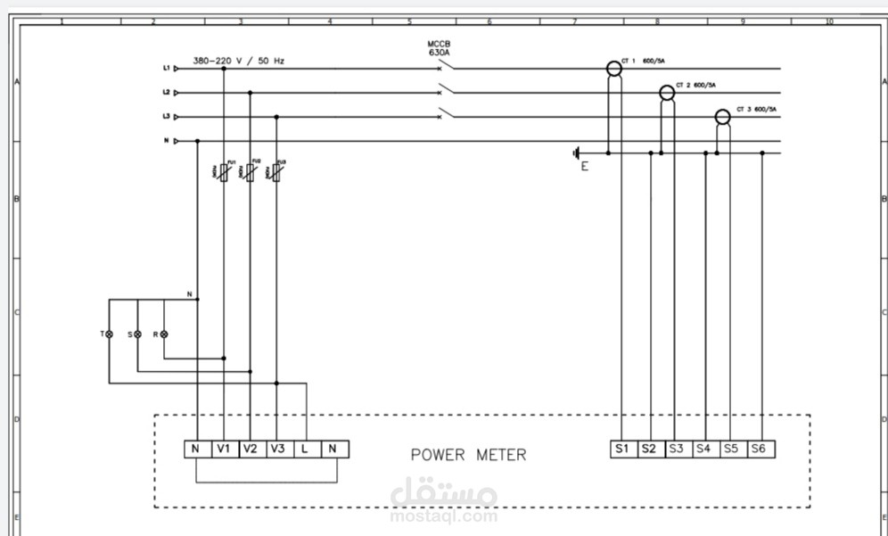 •باستخدام برنامج AutoCAD الكهربائي، تم إنشاء رسومات دوائر كهربائية دقيقة وتوصيلات فعّالة للوحة. تم توفير رسومات واضحة ومفهومة لتيسير عملية التركيب والتوصيل الصحيح للمحركات والأجهزة الكهربائية الأخرى.