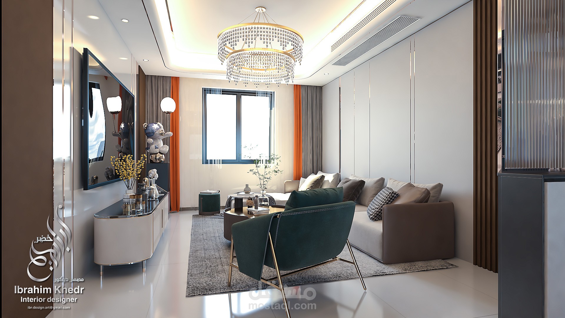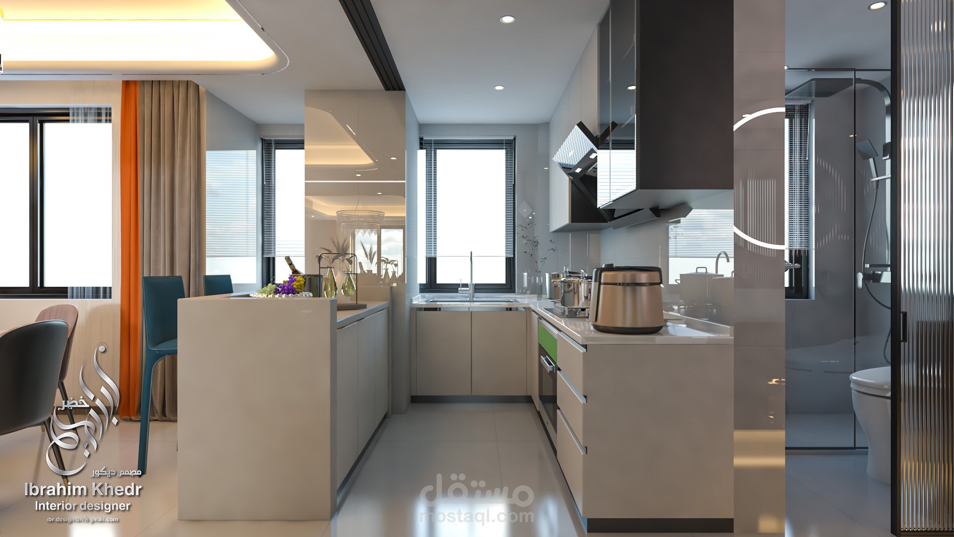 تصميم لليفنج روم مع ديدينج روم مع كيتشن كامل على الطراز الامريكي