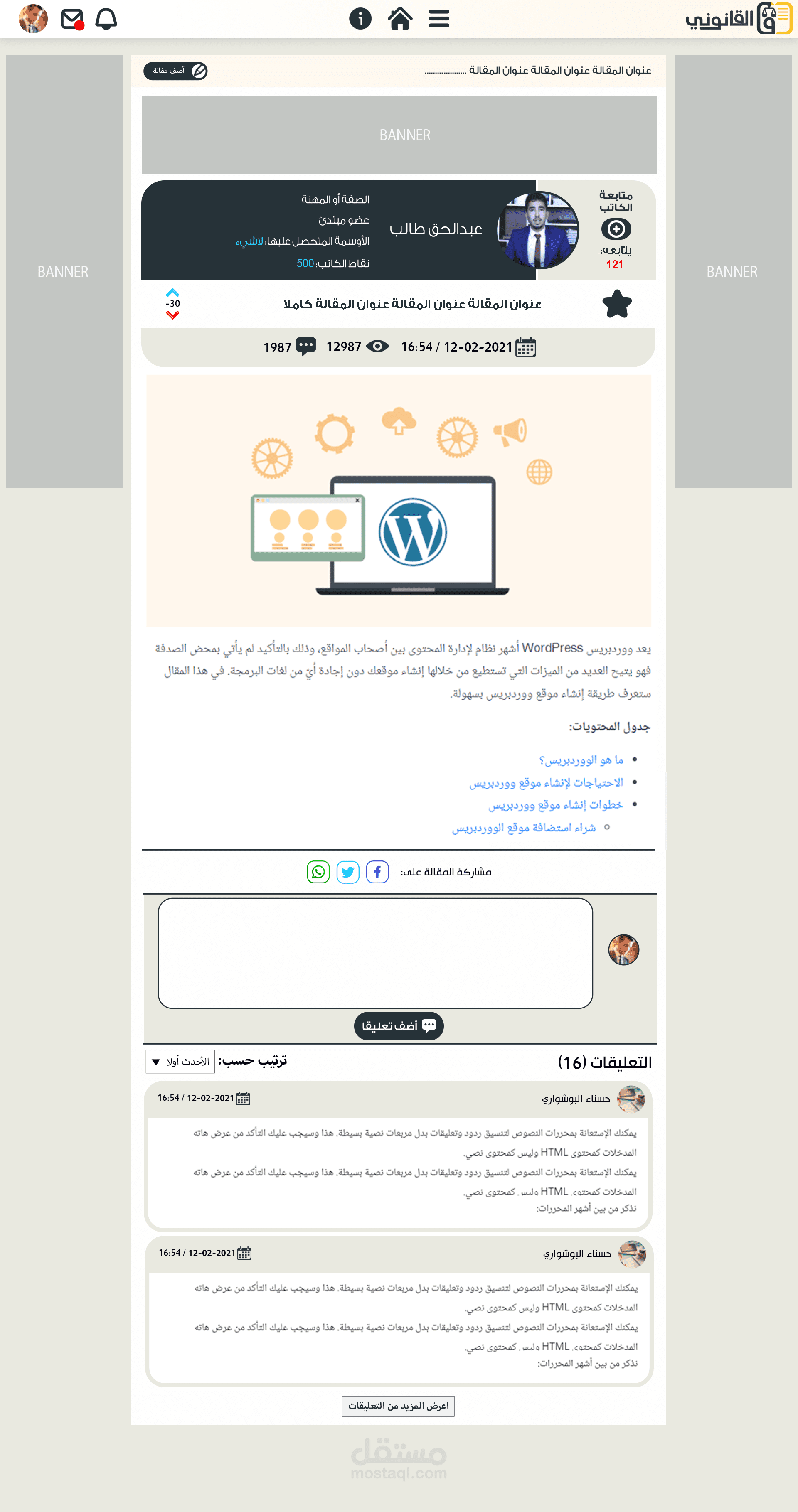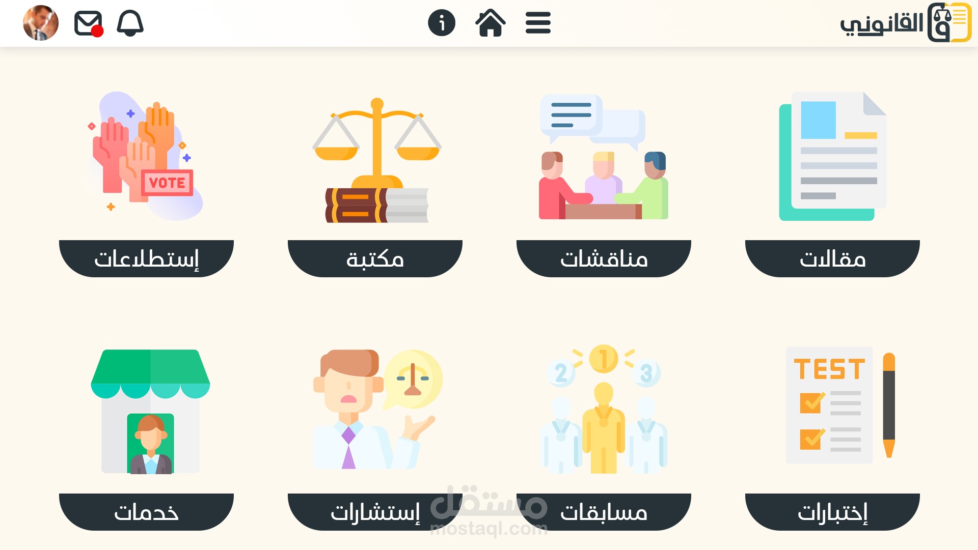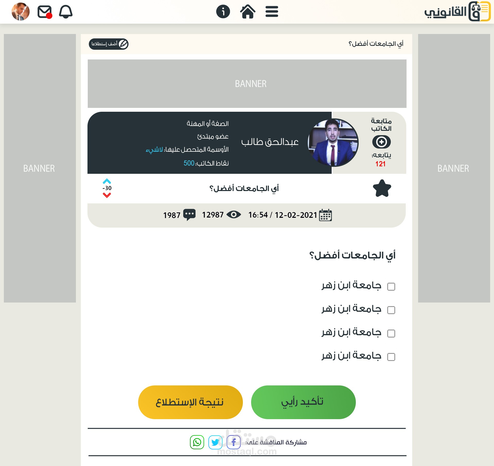موقع إلكتروني لعرض المحتوى القانوني ومناقشته عبر المقالات والمناقشات والاستطلاعات والمسابقات التي يتم نشرها داخل الموقع وينقسم الموقع إلى عدة أقسام، ويوجد لكل مستخدم نقاط يمكنه من خلالها المشاركة والتفاعل داخل اقسام الموقع المختلفة.