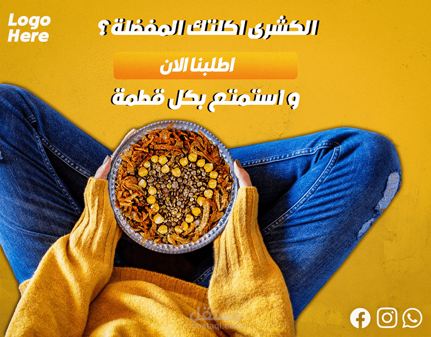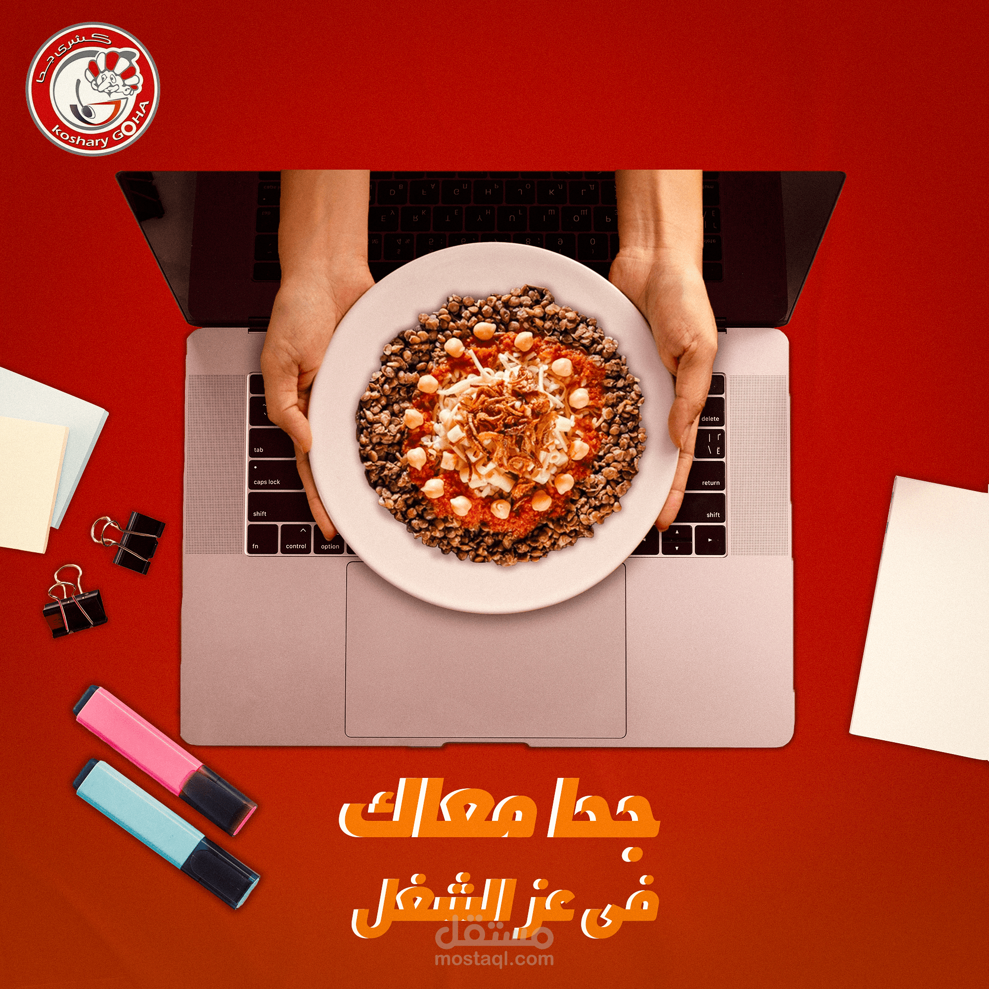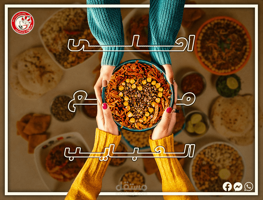 In this project, I tried to show the importance of the koshary dish for Egyptians, which is considered an essential meal for all people, regardless of their financial, cultural, or social status, using several different, expressive, and attractive designs.