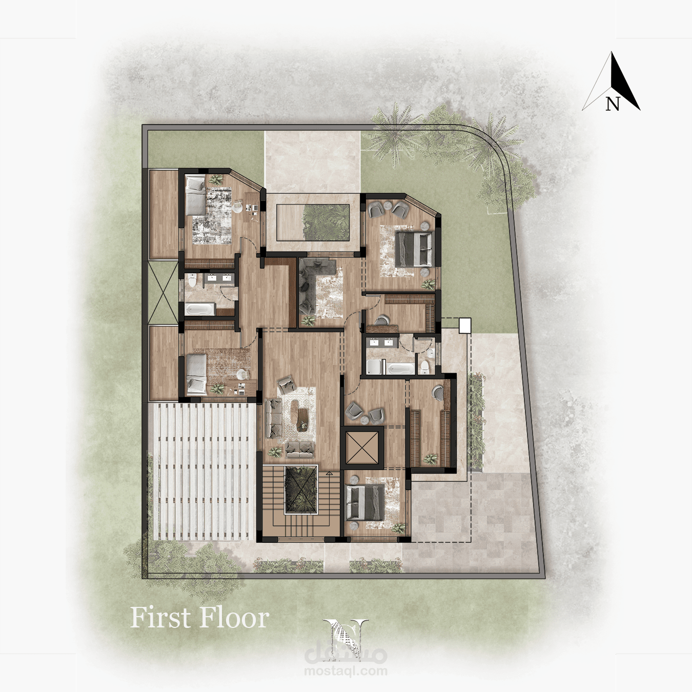 مع توفير مكان للمصعد، وفصل مدخل الرجال عن مدخل الخاص بالعائلة.