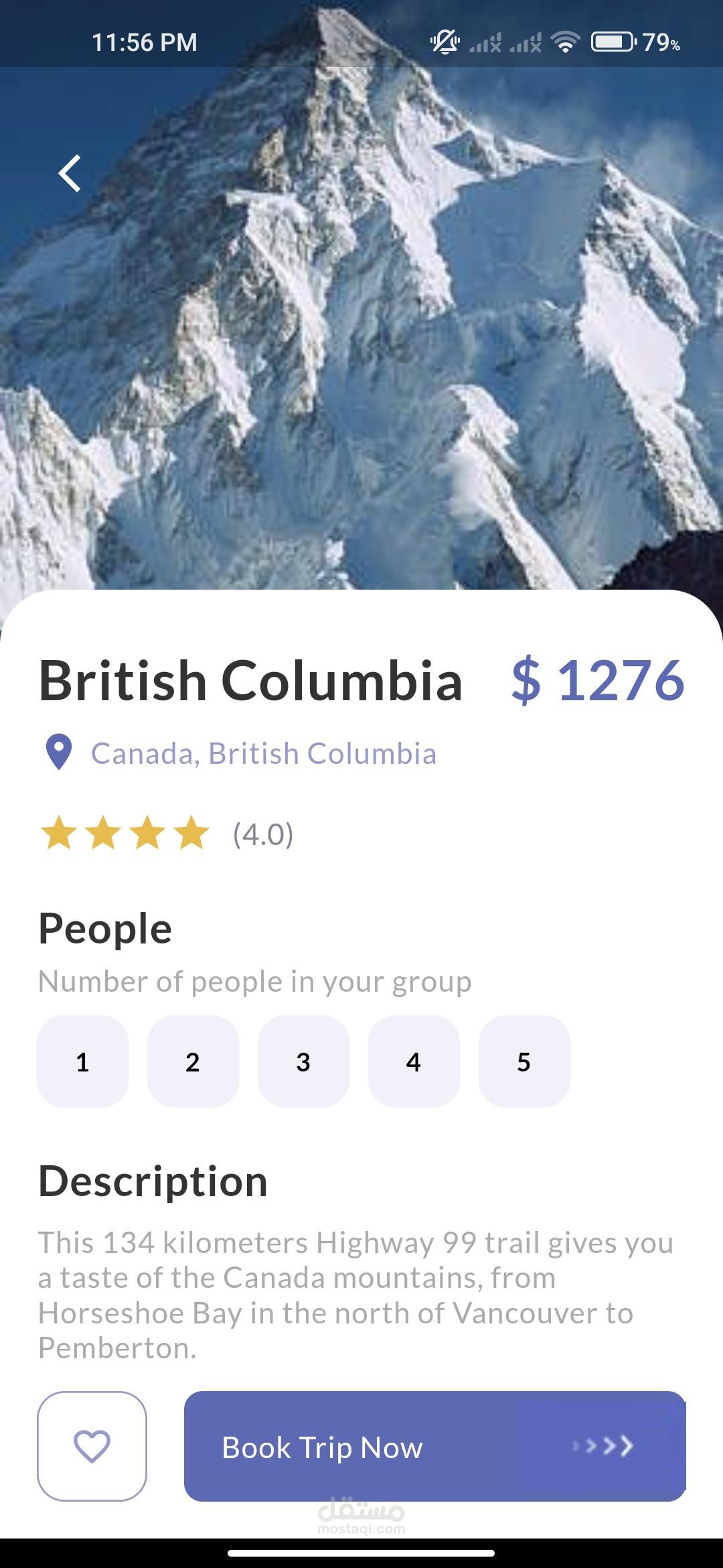 Destination details screen: This screen displays detailed information about a specific travel destination, including its name, description, and price.