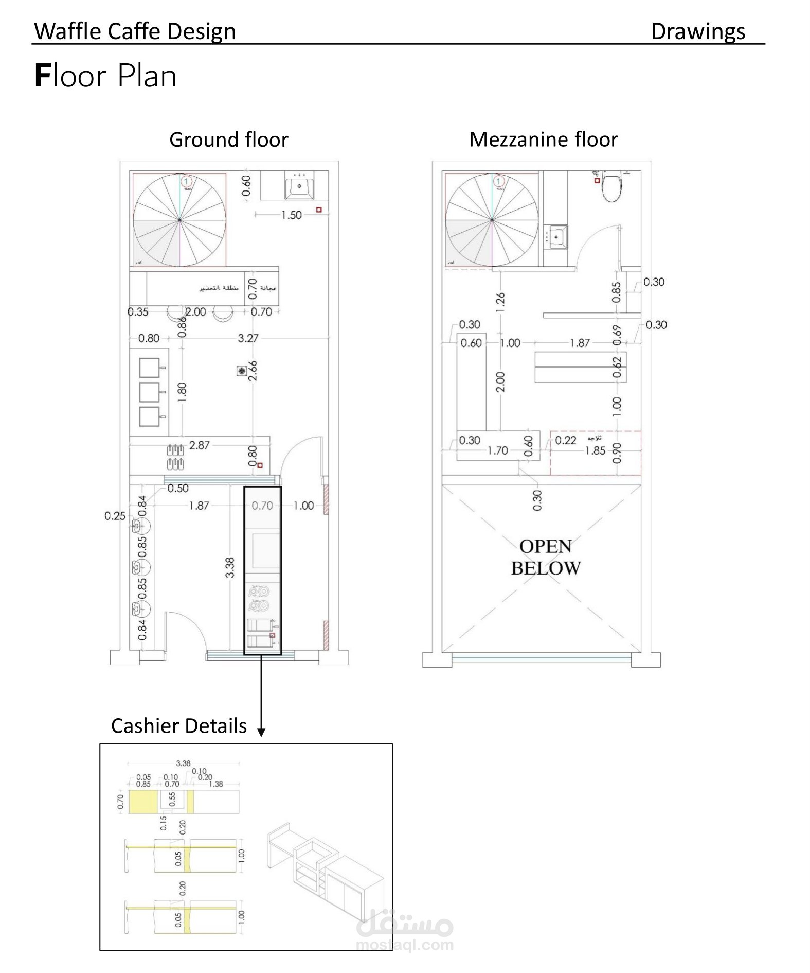 المساحة : 94 م2 (دور ارضي + ميزانين)