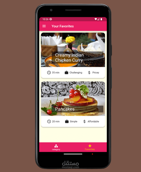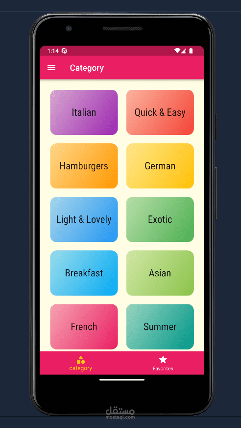 - هذا التطبيق على مجموعة من categories ( أصناف الطعام )