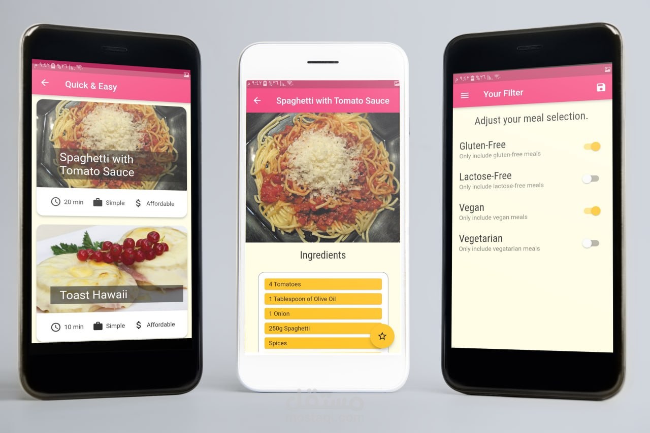 - وكل وجبة يتضمن داخلها مكوناتها وطريقة طبخها بالتفصيل