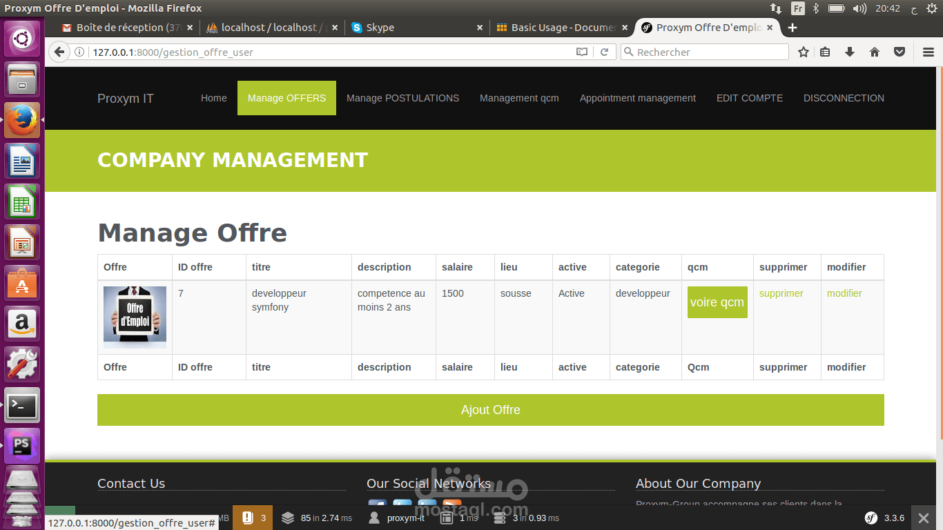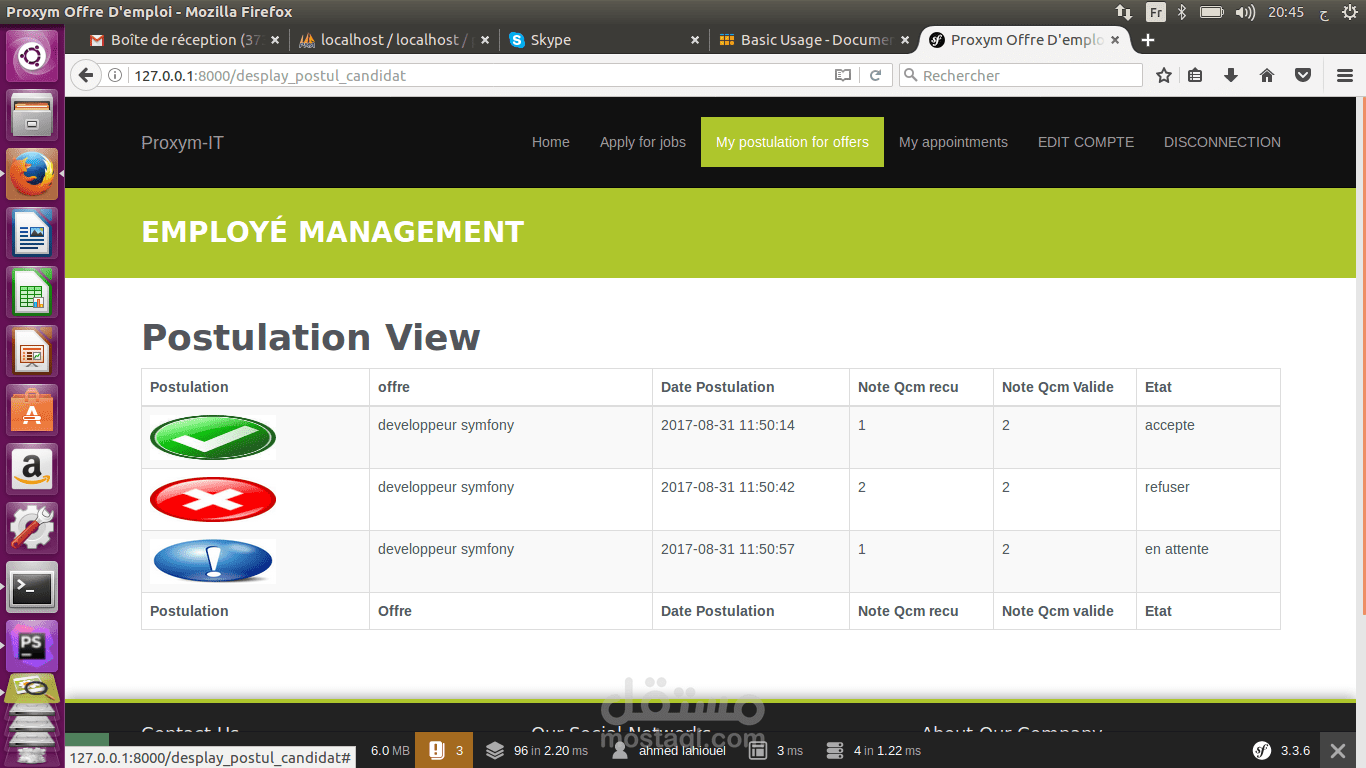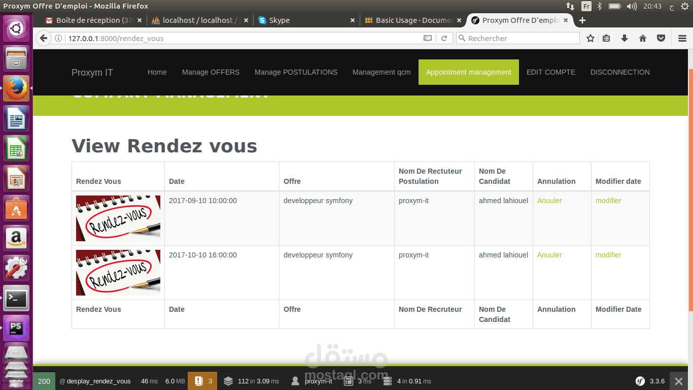 site d offre d emploi avec gestion coté admin+ coté société+ coté candidat avec l envoie des email pour gestion des rendez vous des entretien : outil Symfony