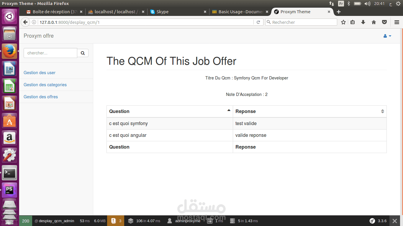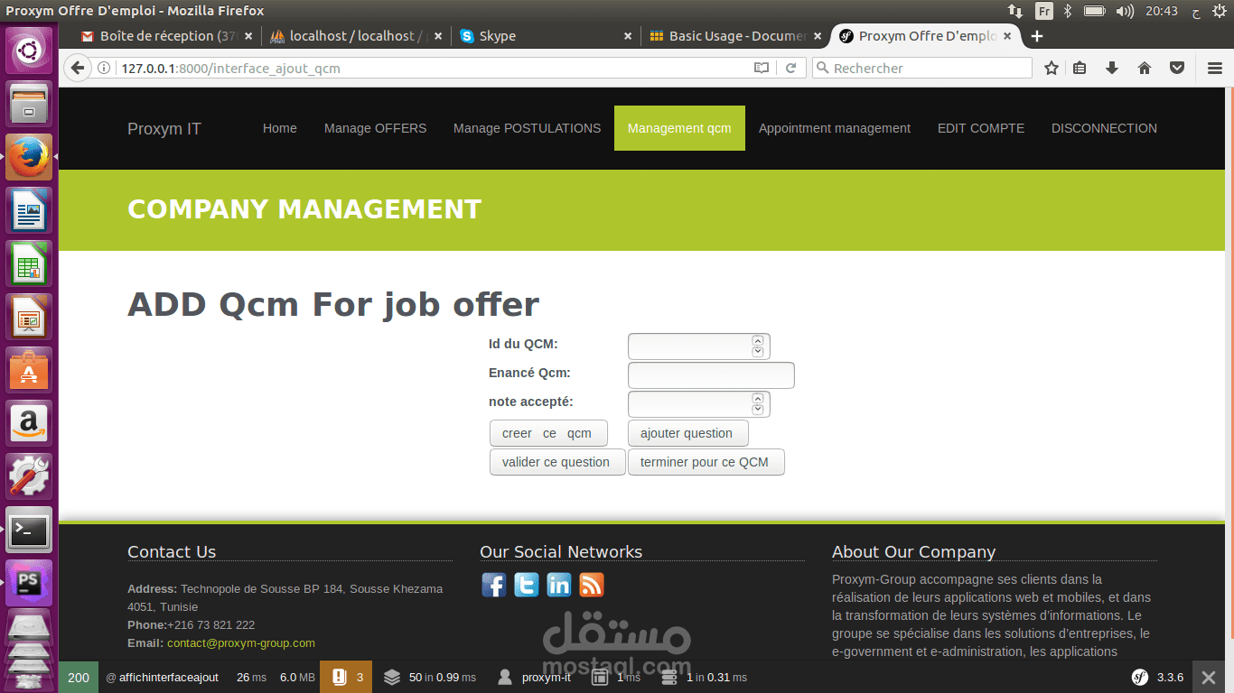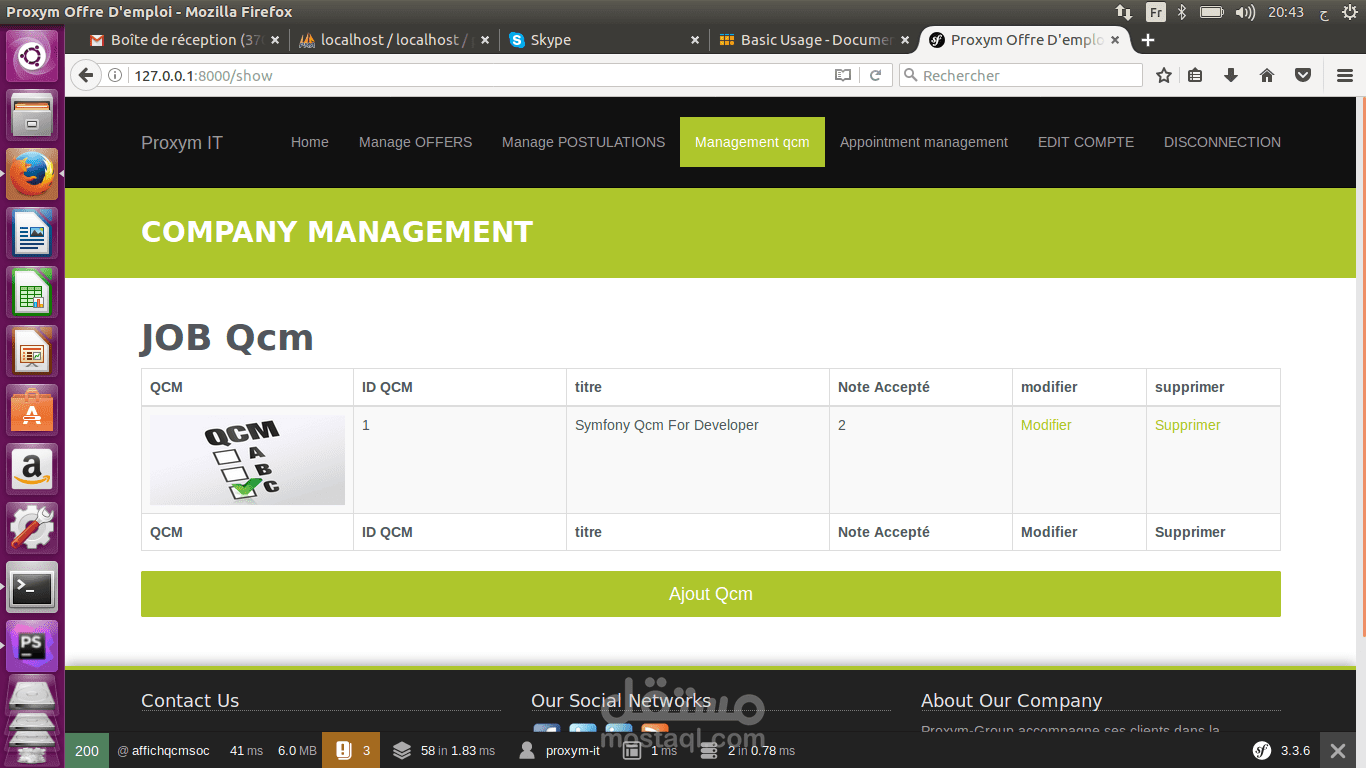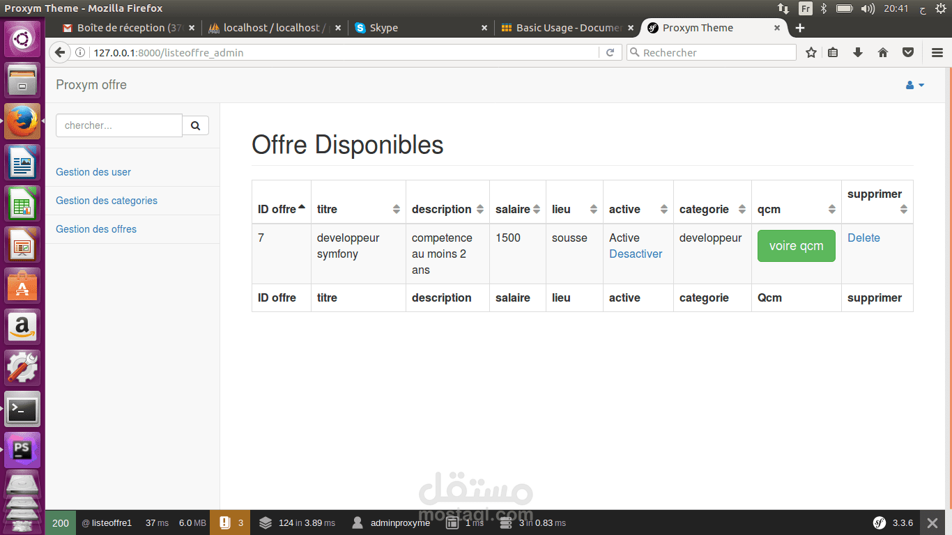 site d offre d emploi avec gestion coté admin+ coté société+ coté candidat avec l envoie des email pour gestion des rendez vous des entretien : outil Symfony