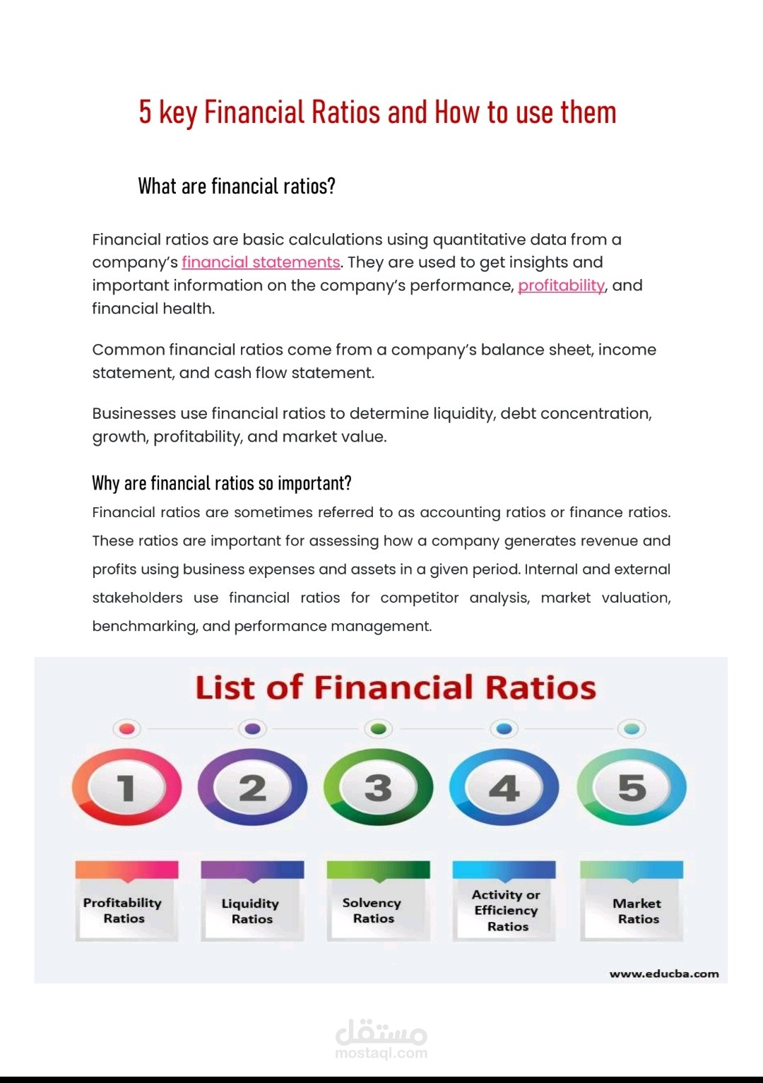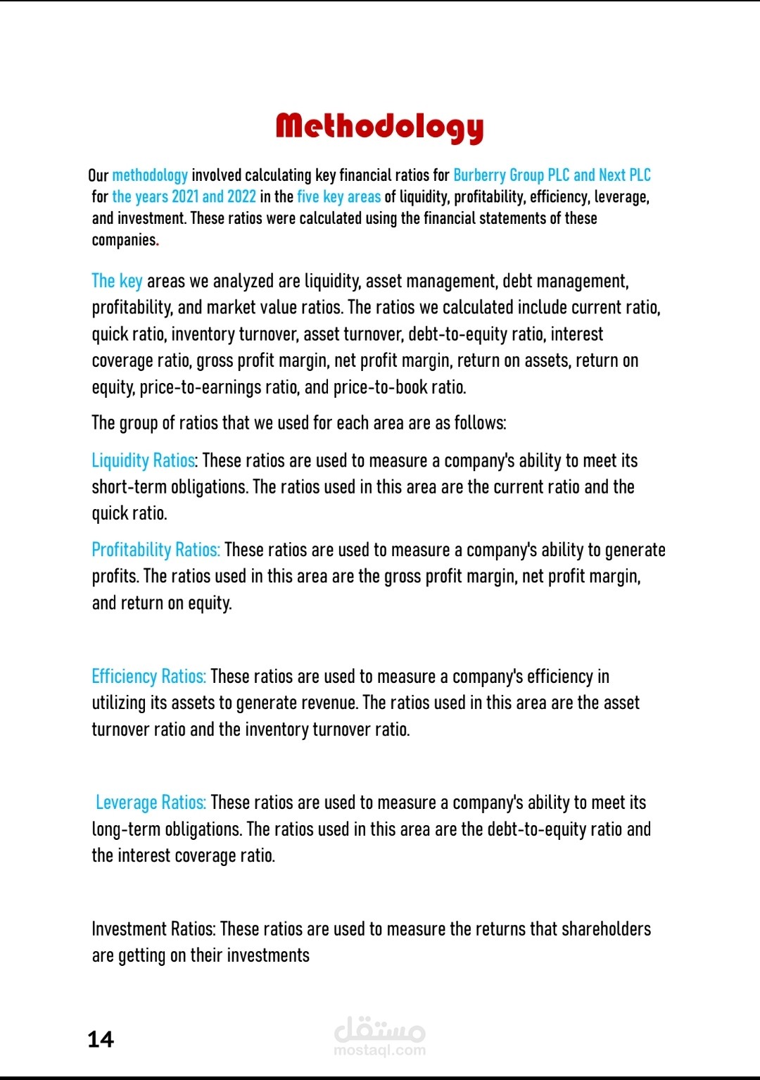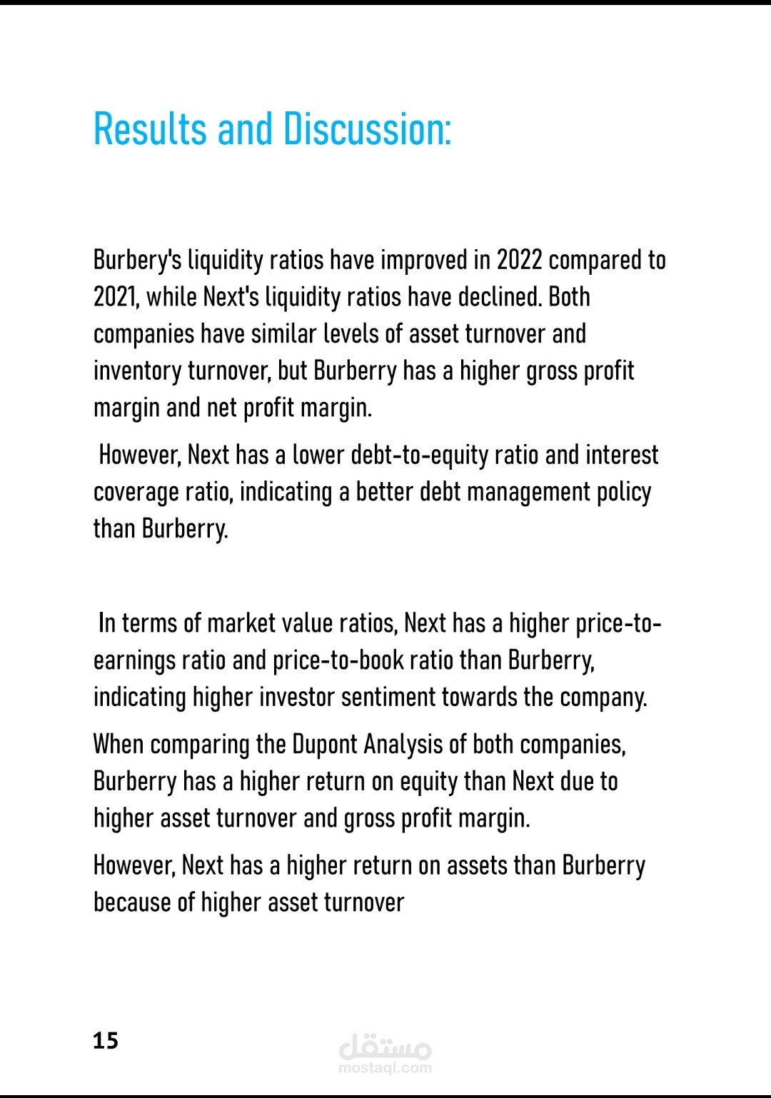 البحث عباره عن مقارن بين شركتين فاشون بكل تقارير مالية و حسابية مع استخدام 5 Key financials Ratios