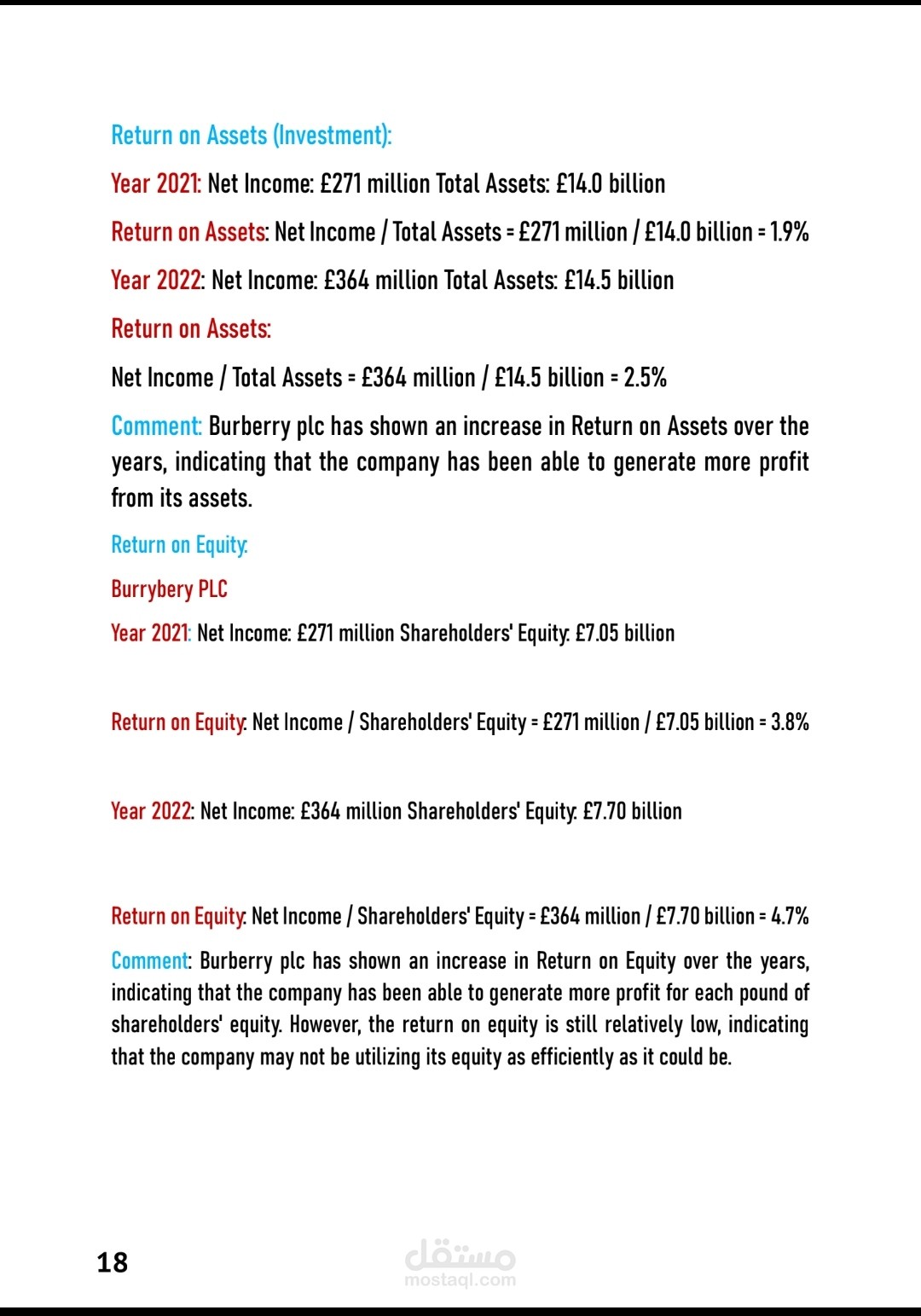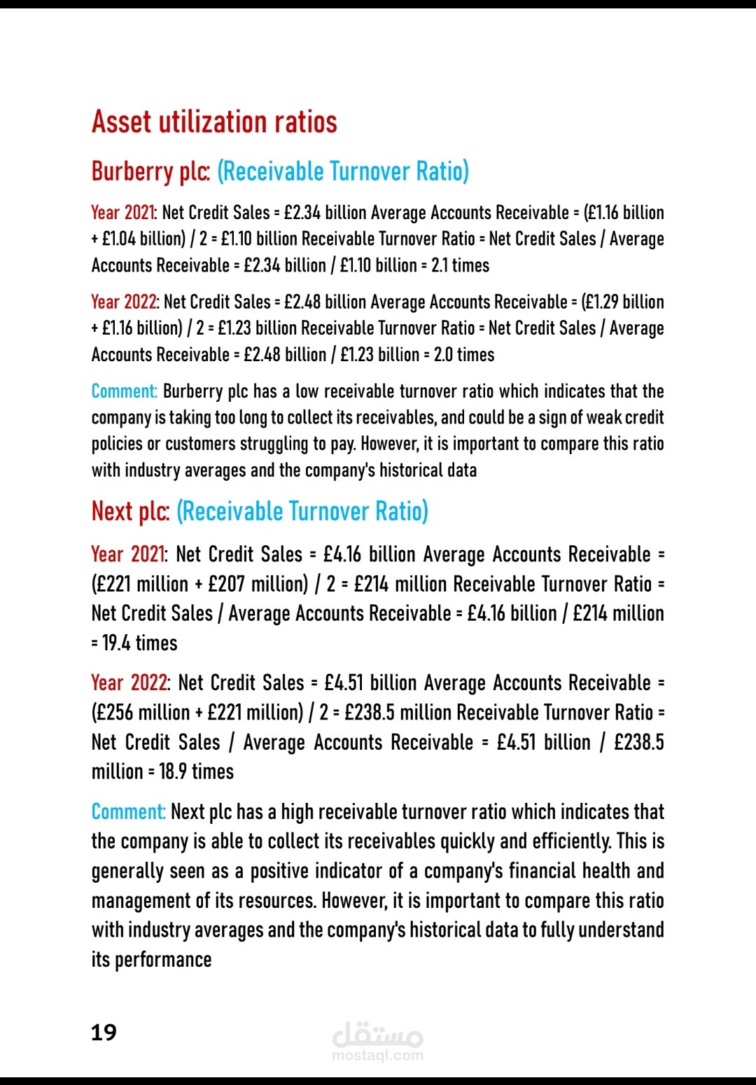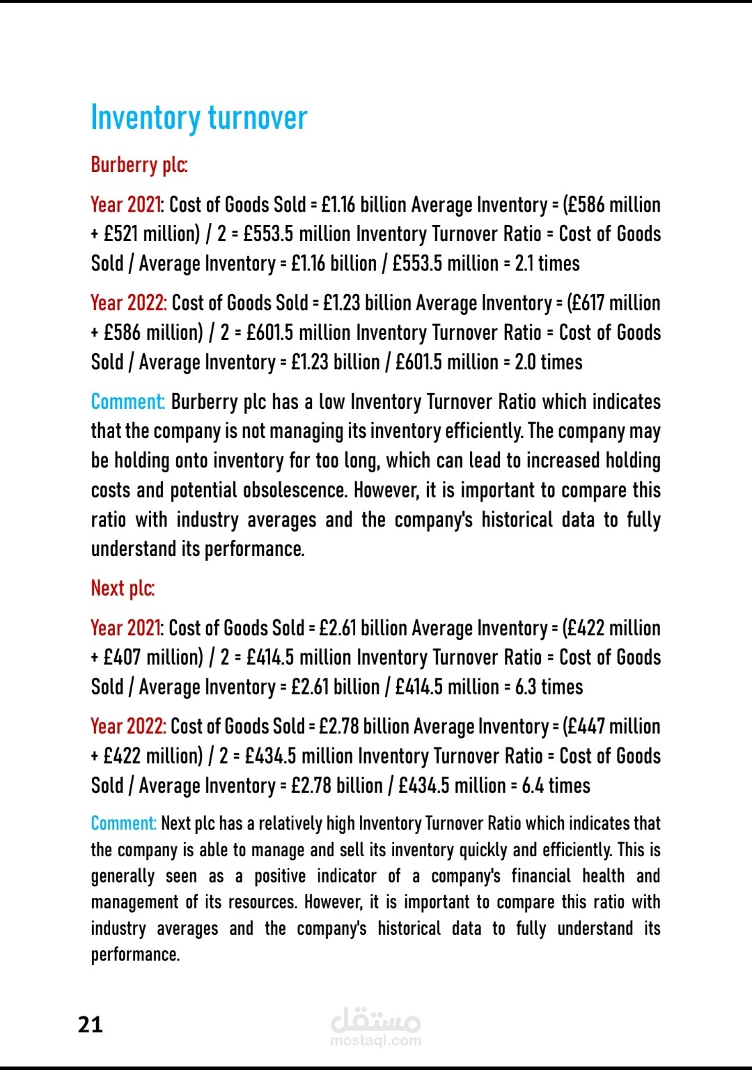 البحث عباره عن مقارن بين شركتين فاشون بكل تقارير مالية و حسابية مع استخدام 5 Key financials Ratios