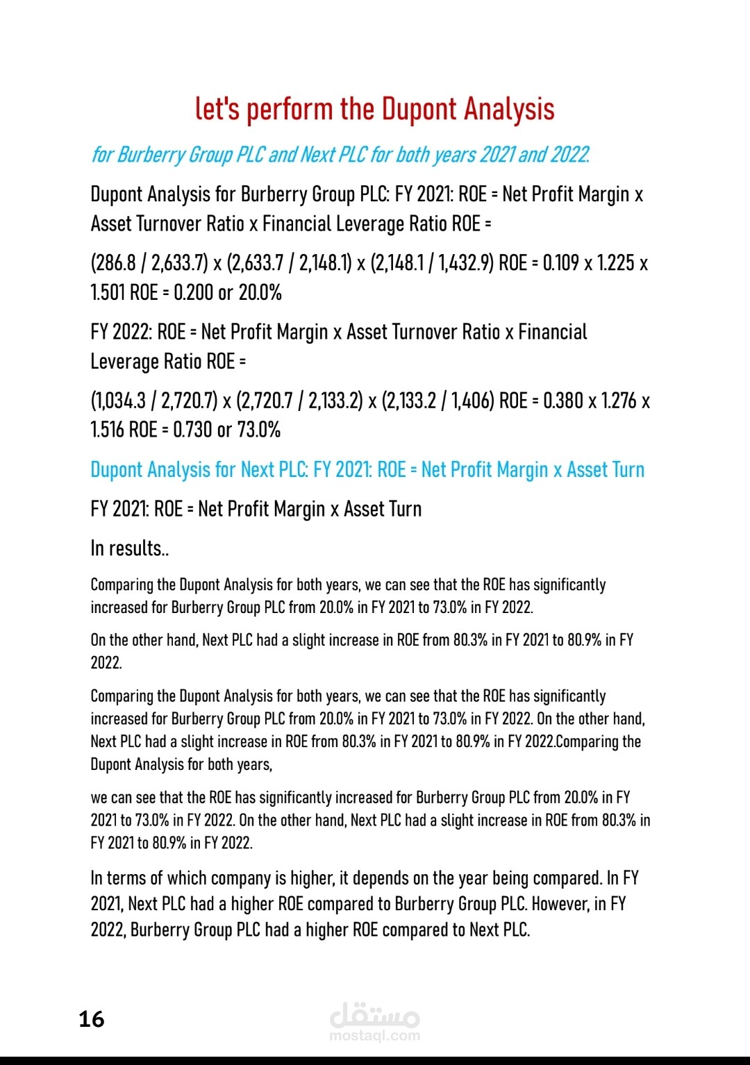 و عمل ال Dupont Analysis للشركتين لتاريخ 2022 /2021