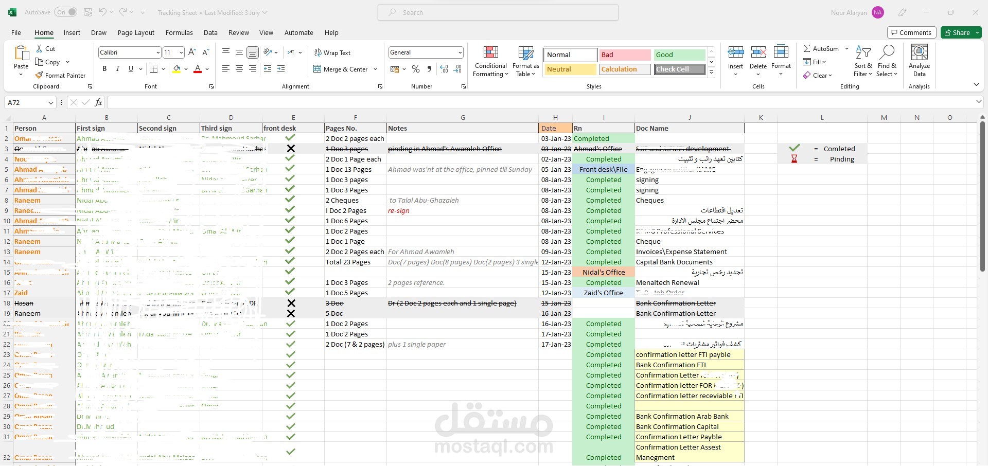 Tracking sheet for bunch of documents for a company, that's a sample of it and I erased the confidential information.