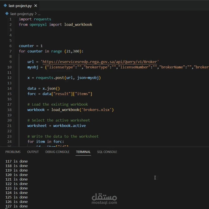 جمع بيانات من الهيئة العامة للعقار السعودية - بيانات الوسطاء العقاريين