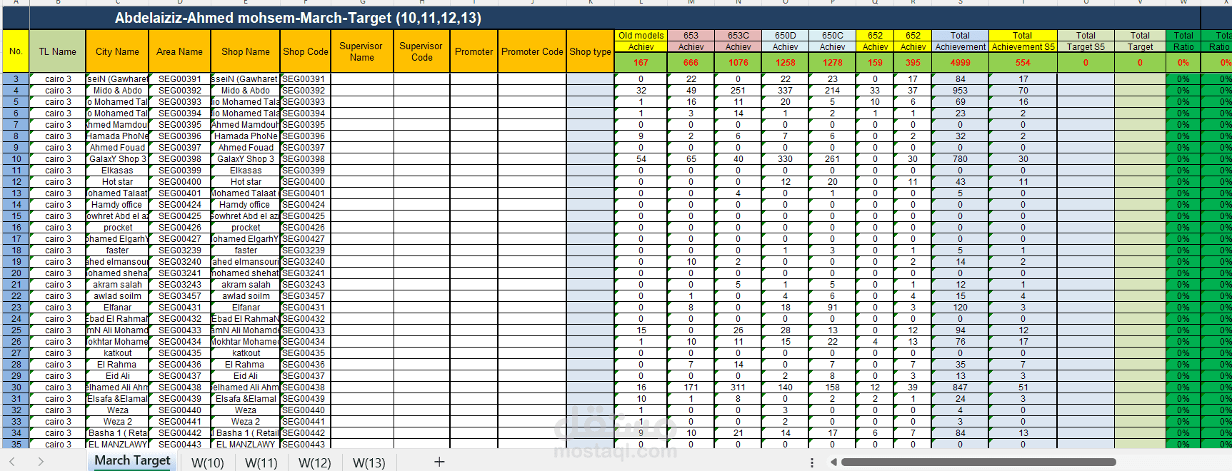 Tracking target sales using excel