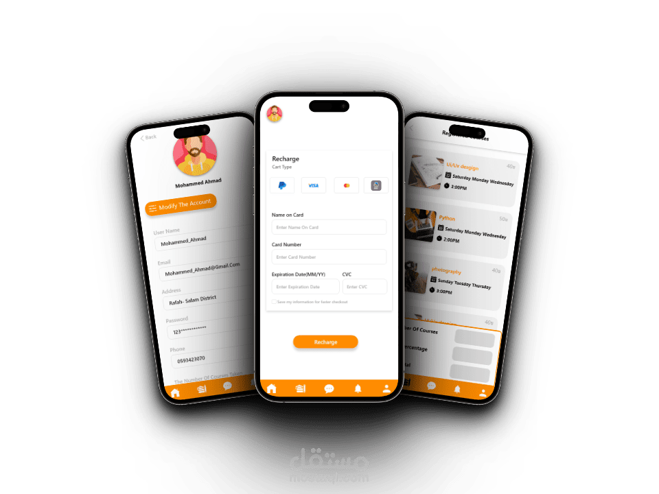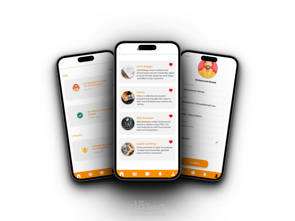 قمت بتطبيق الخطوات الأساسية في العملية الخاصة بـتصميم UX/UI باستخدام تطبيق adobe XD