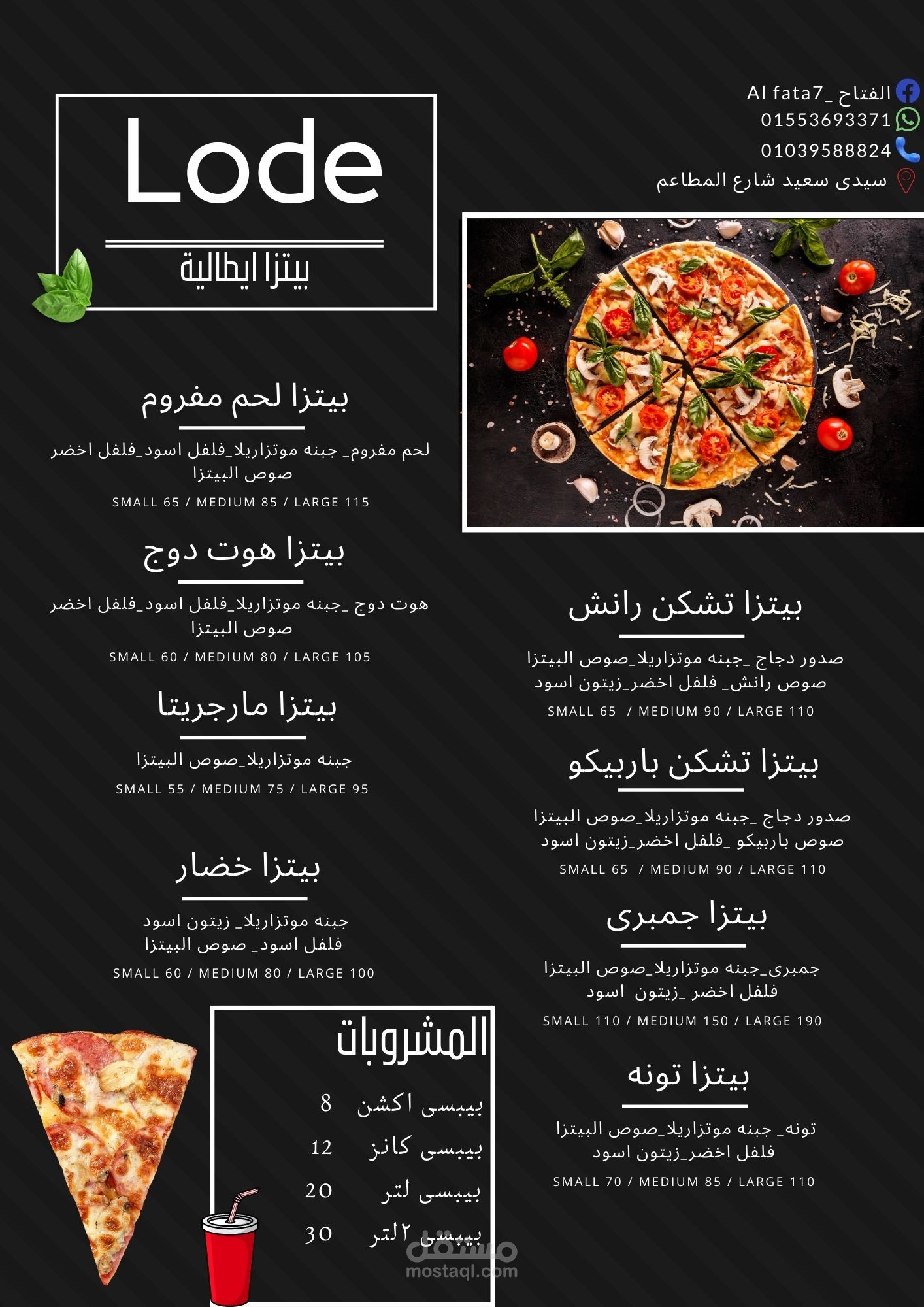 مينو مطعم بيتزا