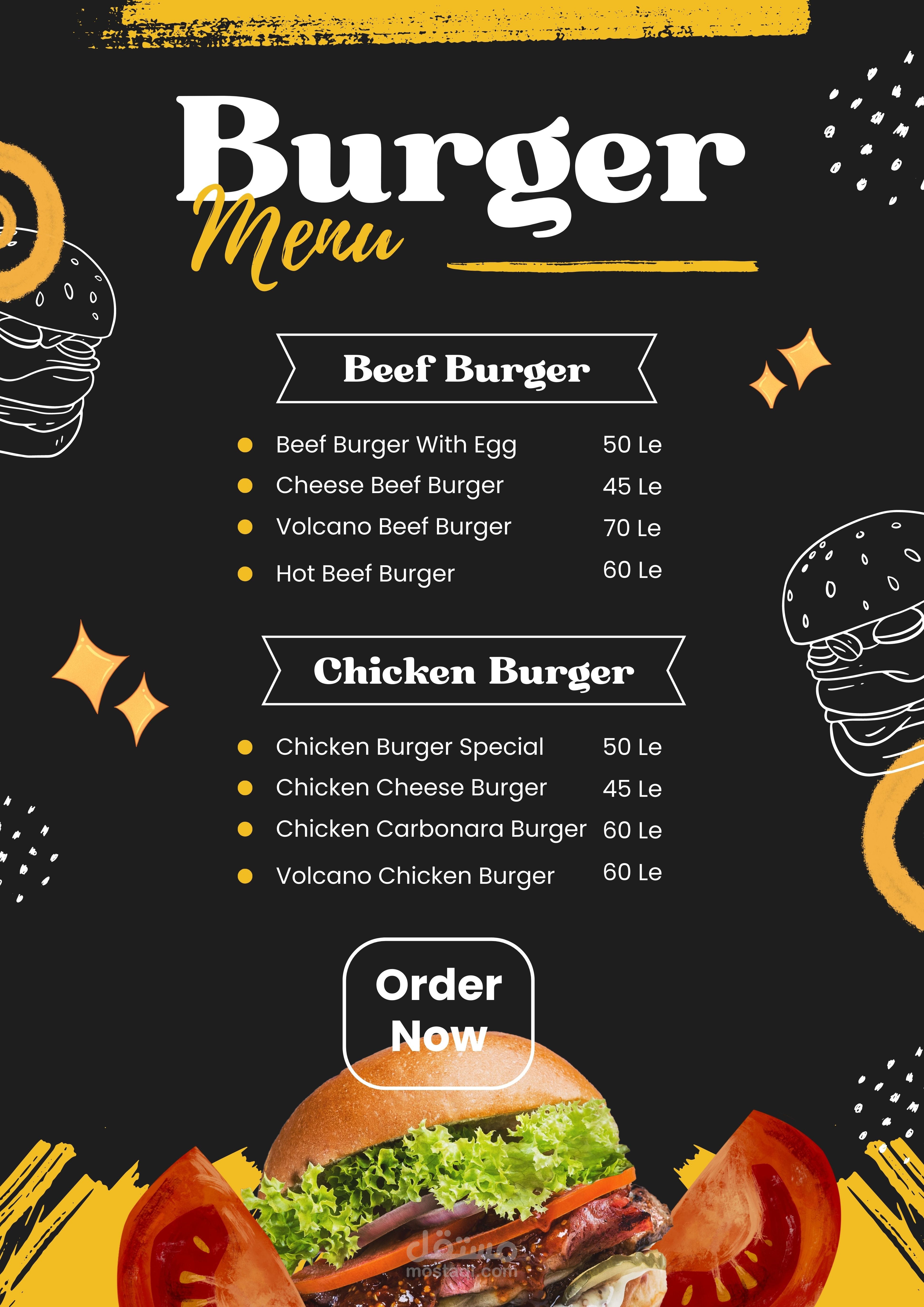 منيو لمطعم برجر