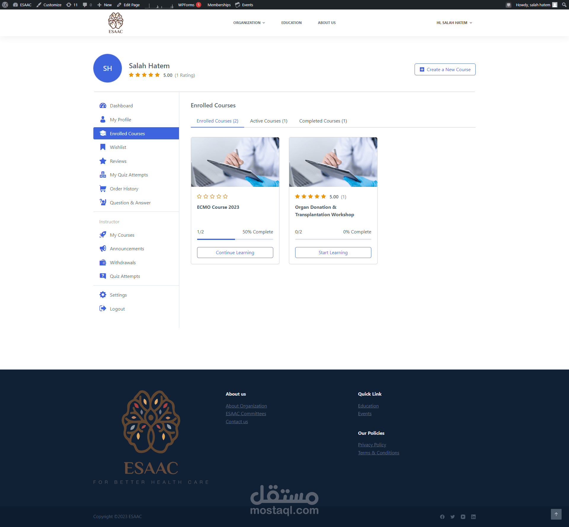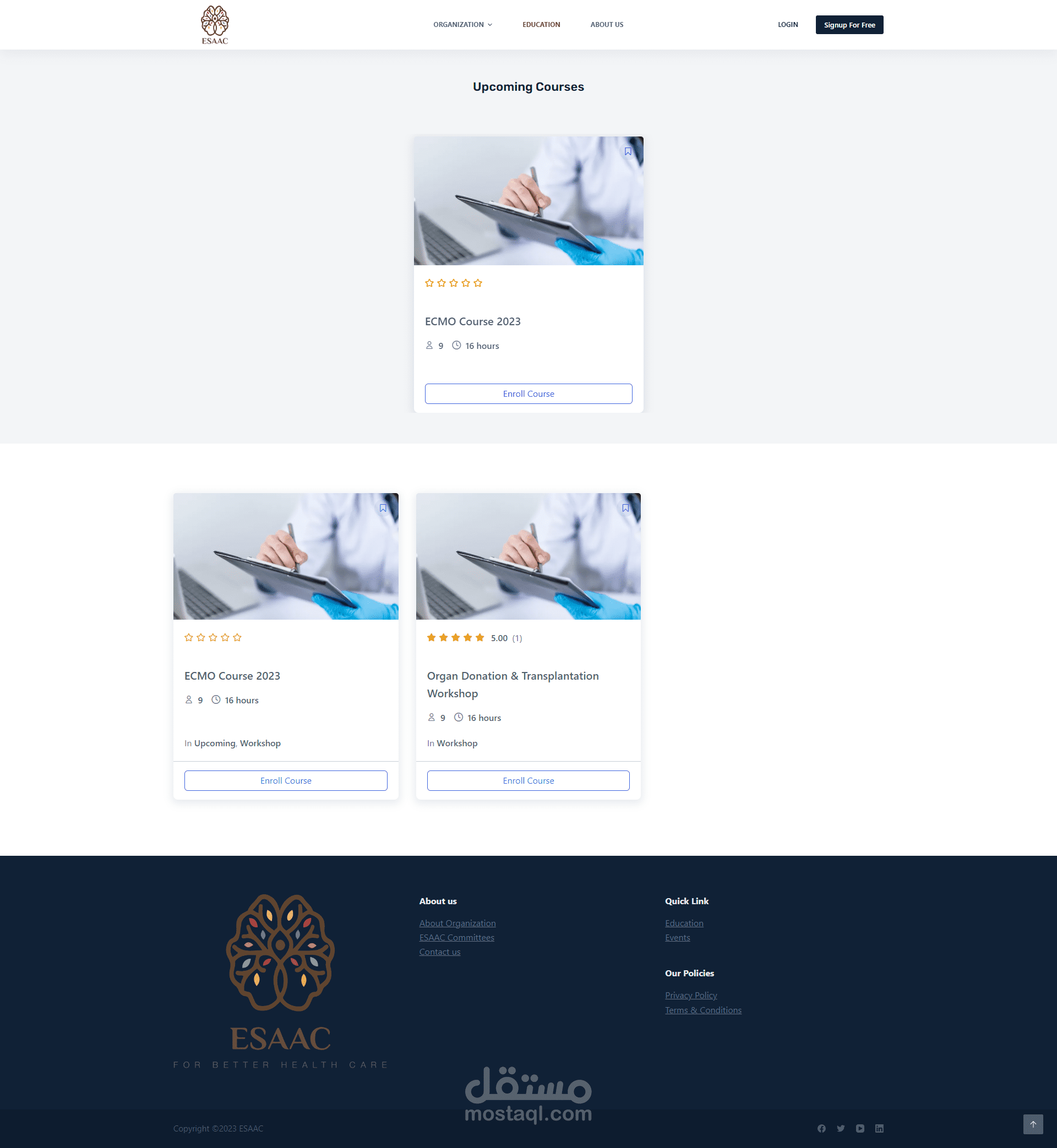 Medical organization membership Website Offering Special prices on courses and events to the members.
