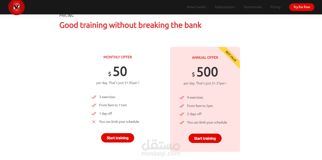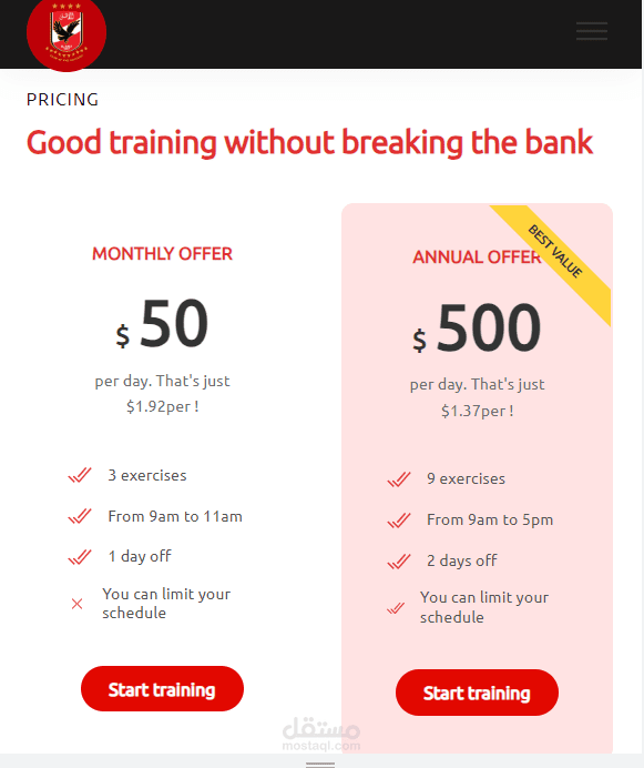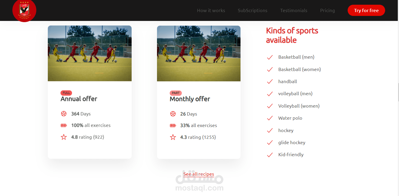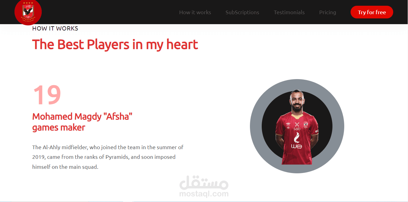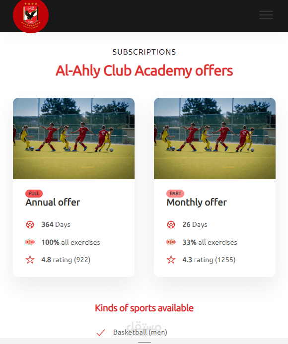 هو مشروع أكاديمية نادي الأهلي المصري وبه الإشتراك اليومي والشهري، ولقد قمتُ بتصميمَهُ وبنائه بالكامِل