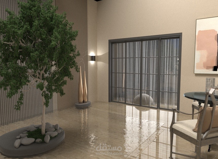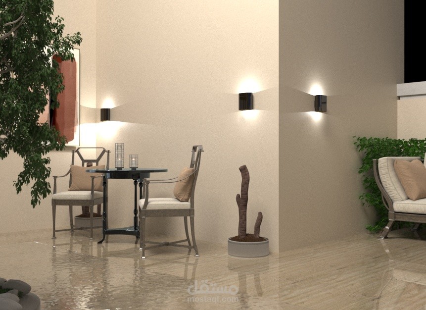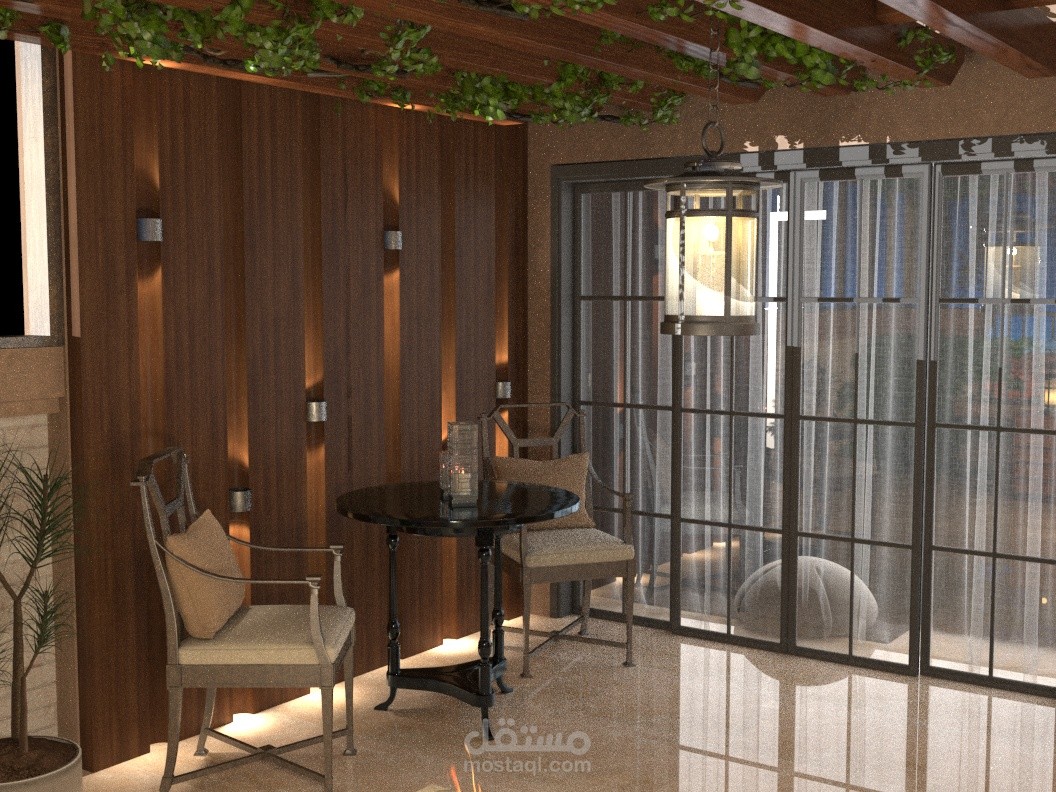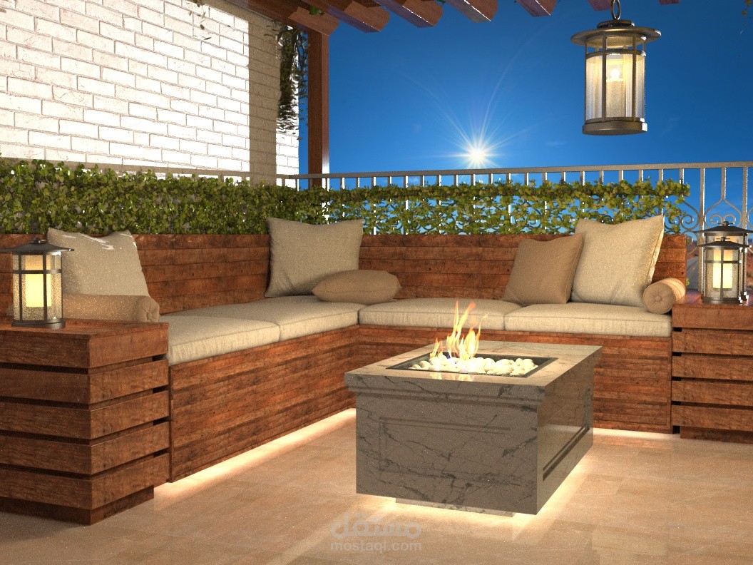تصميم مودرن لروف مبني سكني من الخشب والطوب و الاحجار
