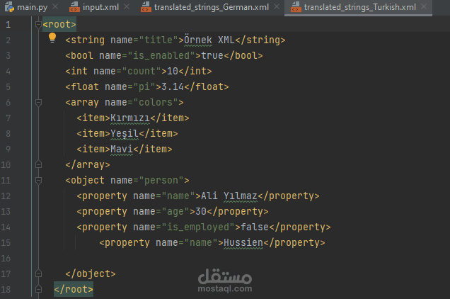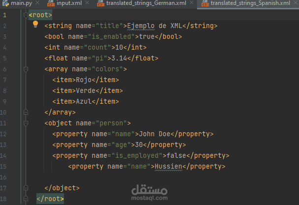 This project is a Python code that utilizes an API to translate an XML file into multiple languages. To use it, simply place the file you wish to translate in the same directory as the Python file and name it 'input.xml'. Then, run the code, and it will automatically translate the file into multiple languages.