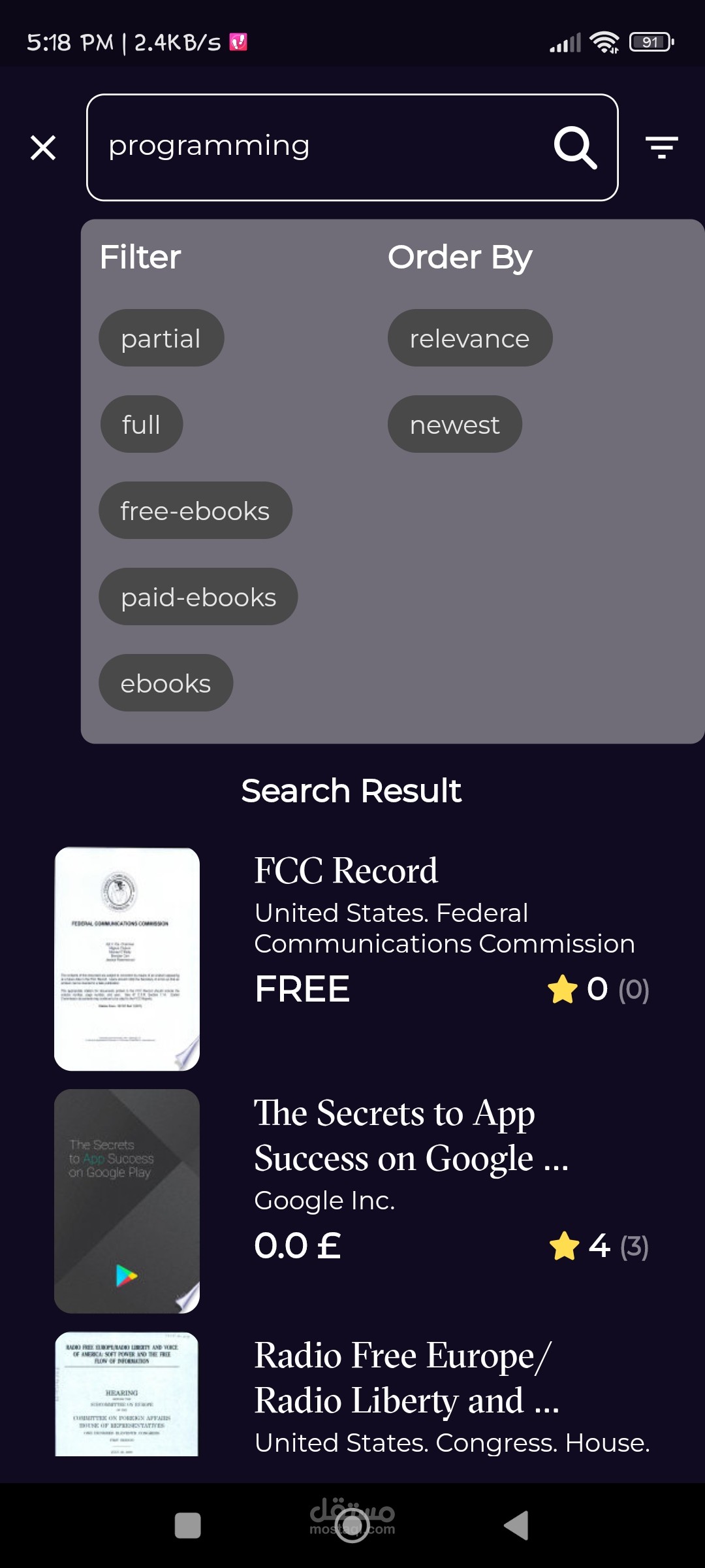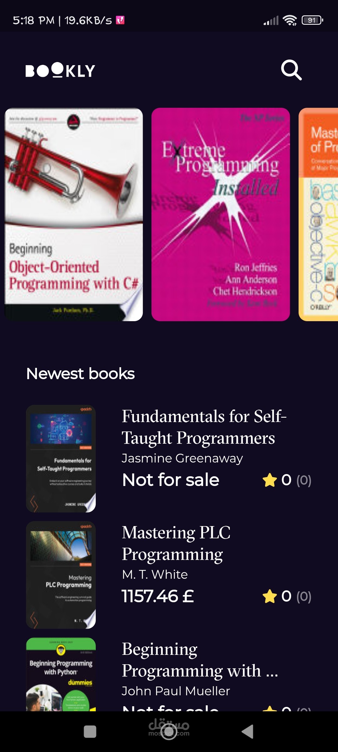 تطبيق Bookly هو تطبيق يقوم بعرض الكتب مع تفاصيل كل كتاب وامكانية عرض الكتب وشرائها، مع ميزة البحث عن كتاب وفلترة نتائج البحث.