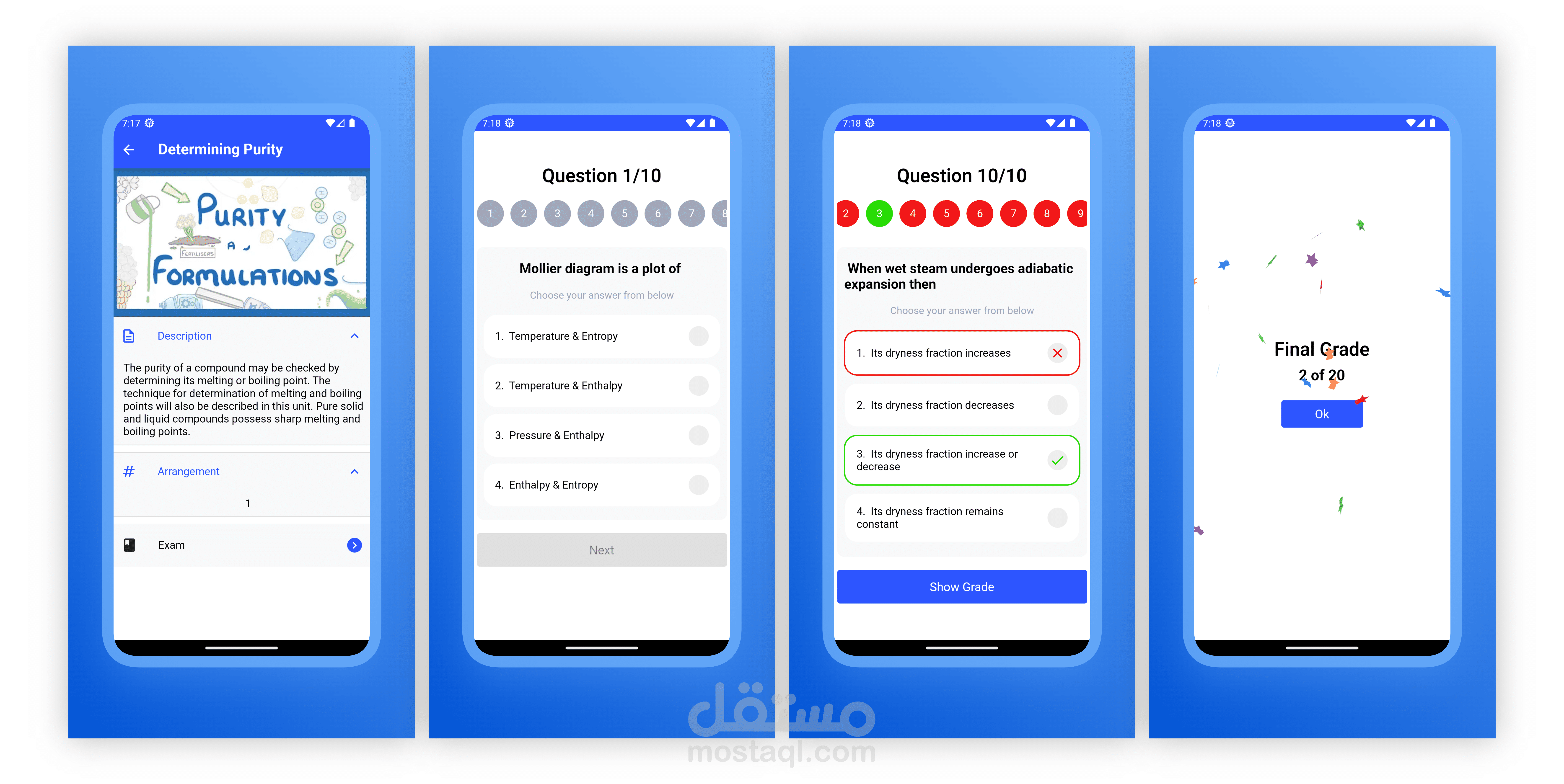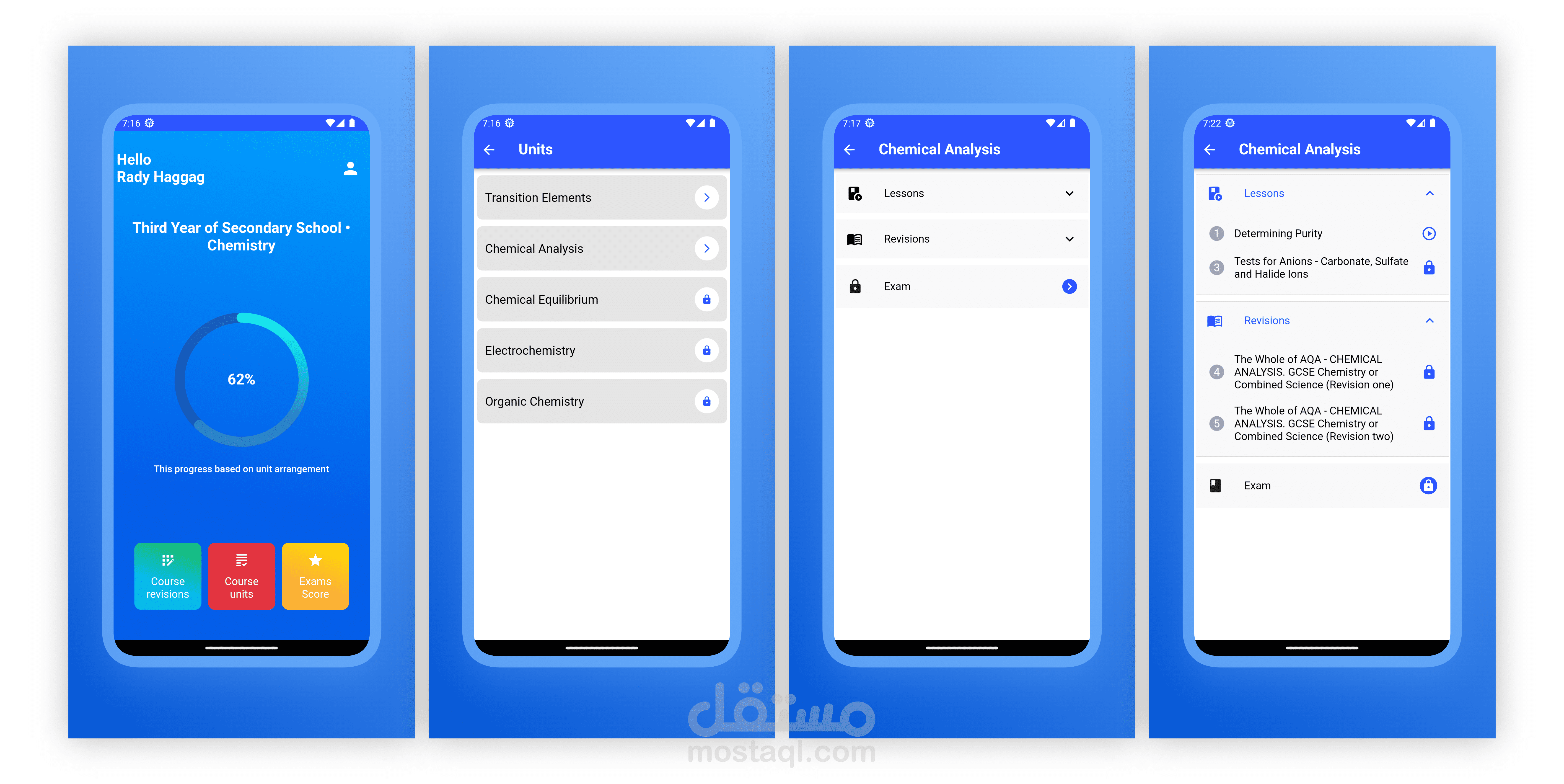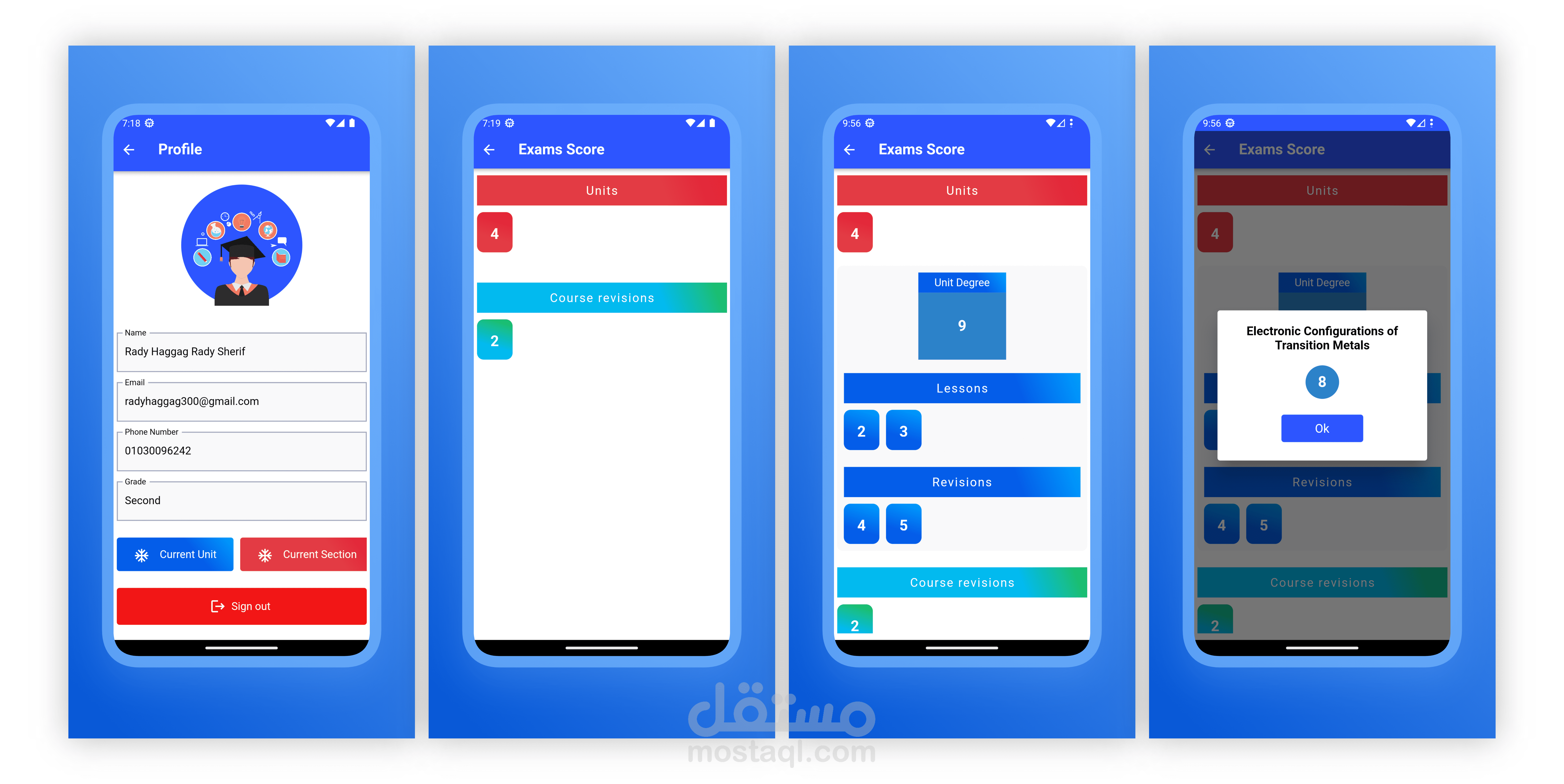 فى التطبيق يتم عرض تقدم الطالب فى الكورس.