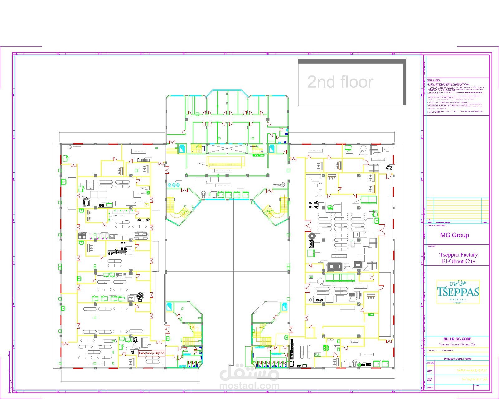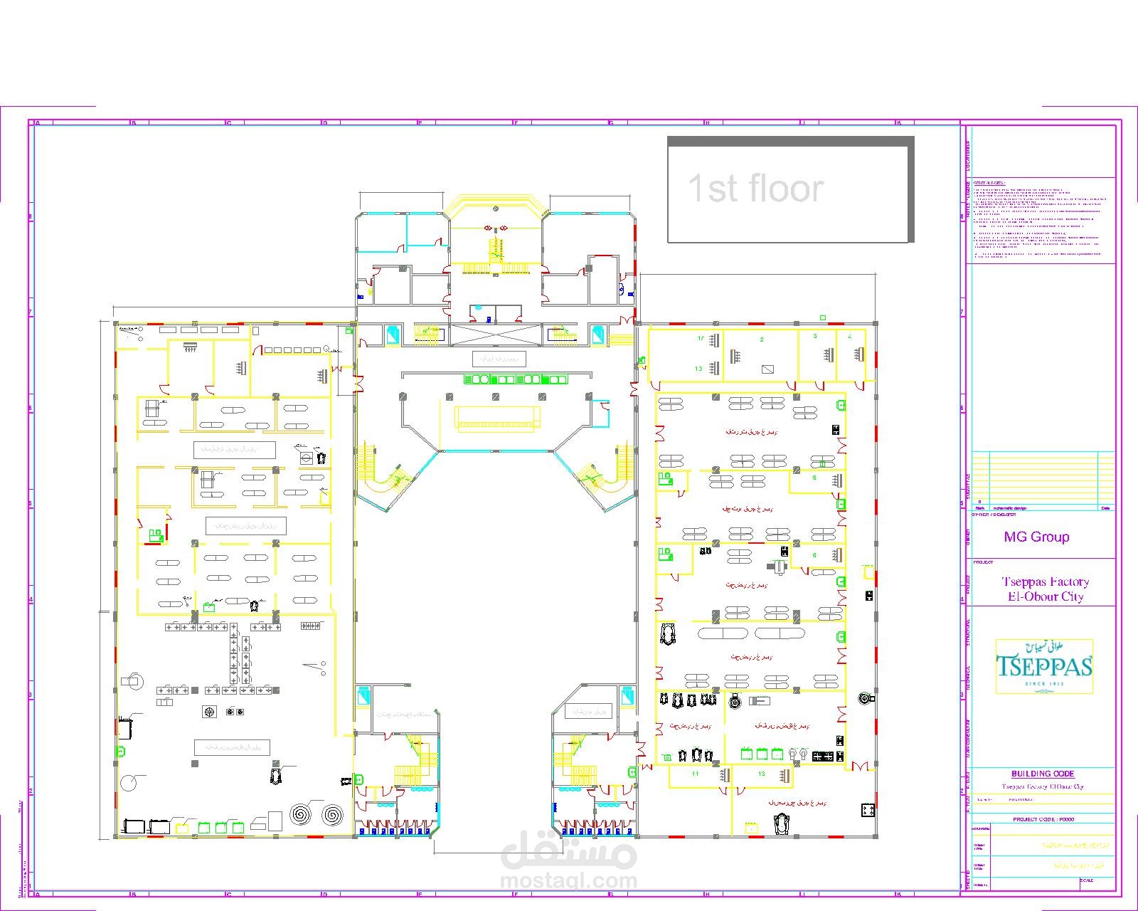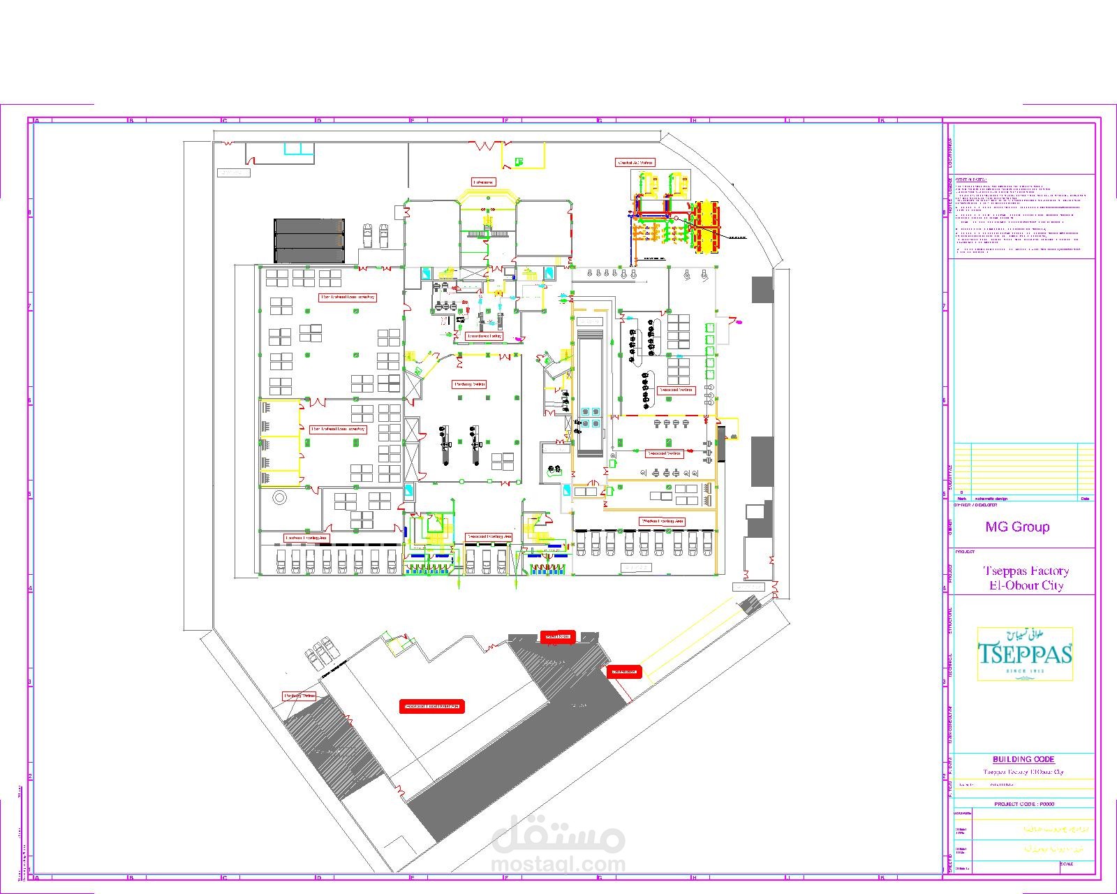 رفع رسومات AS BUILT كامل لمصنع بمدينة العبور يتكون من 3 طوابق بالاضافة الي فرش وترتيب الماكينات داخل المصنع
