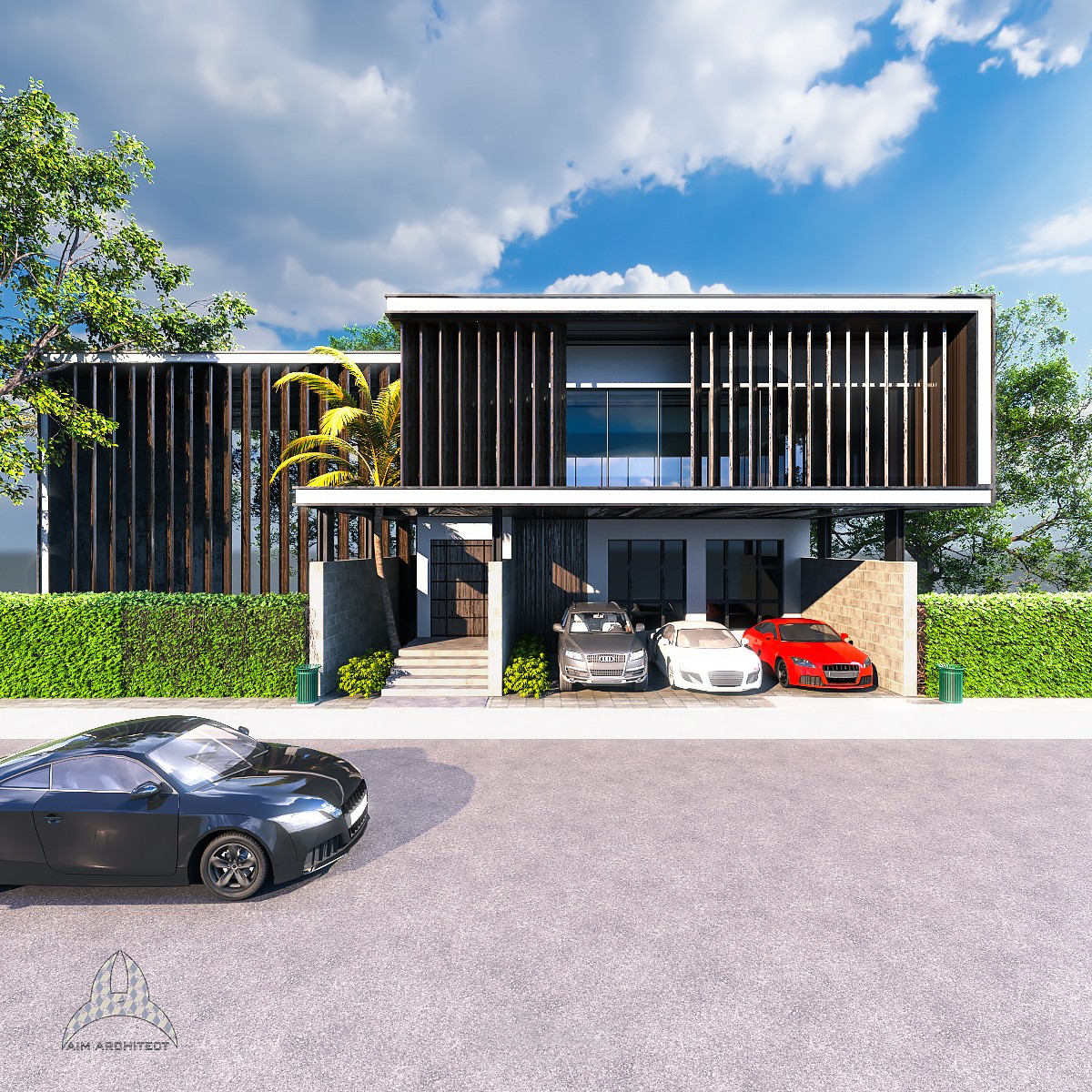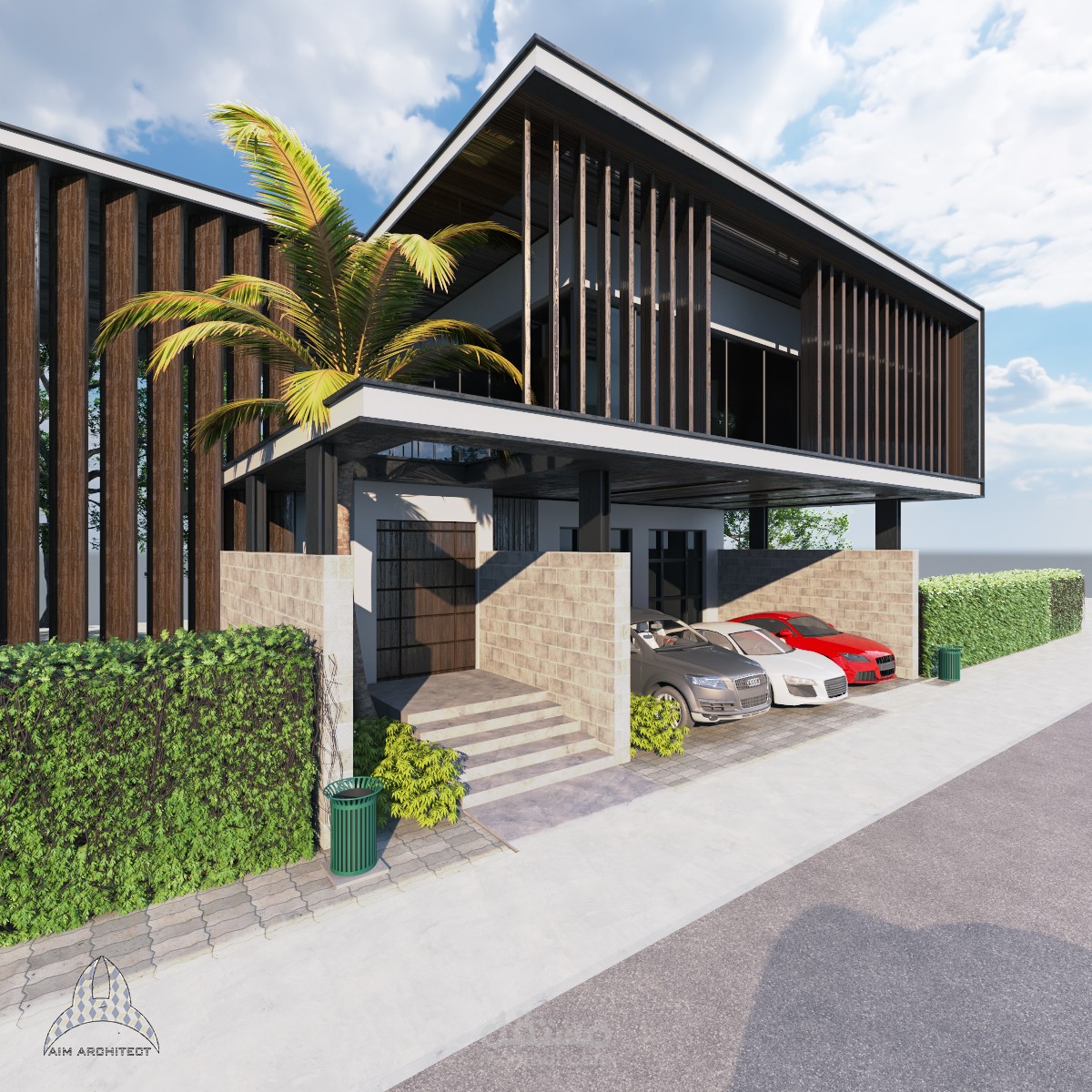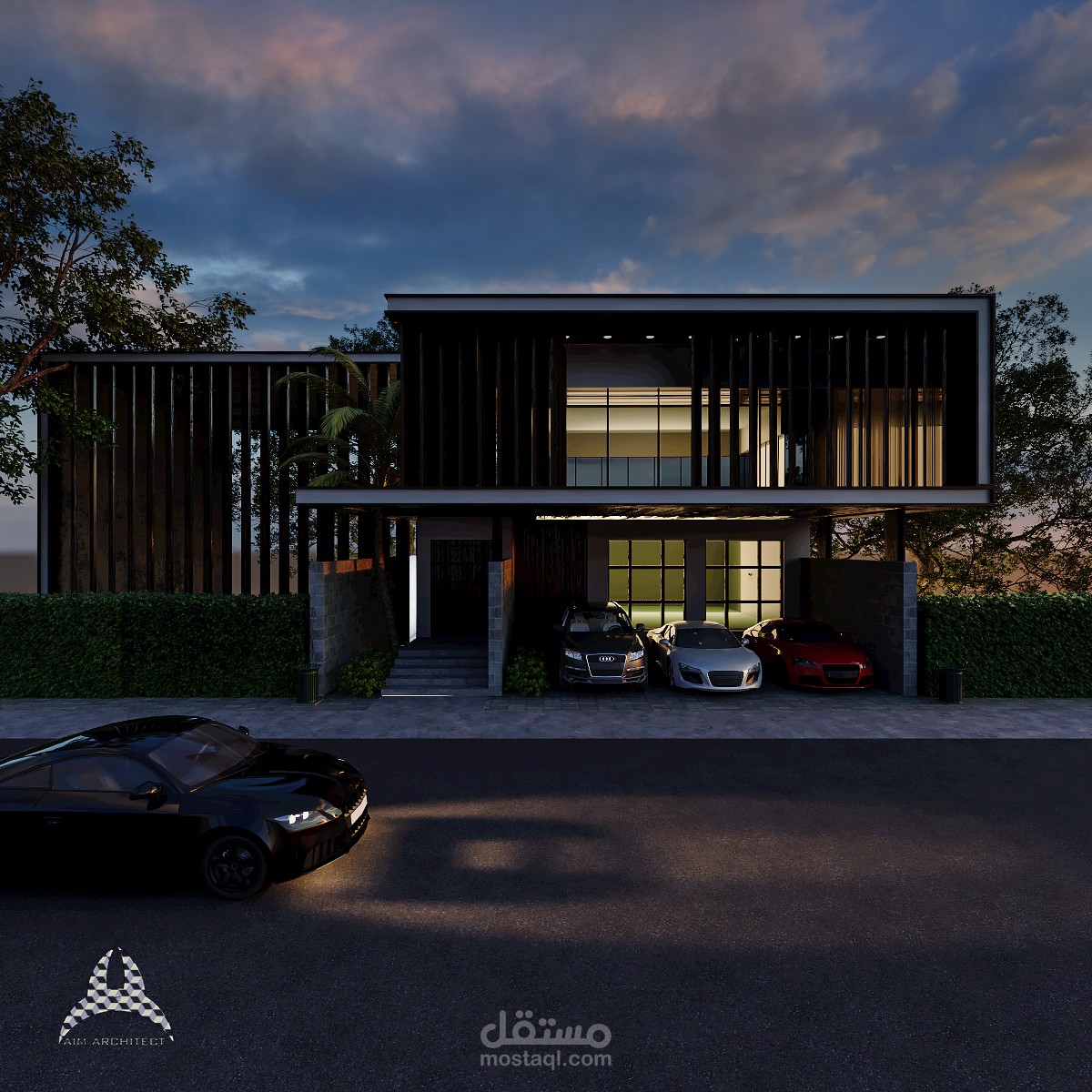 تصميم واجهة خارجية لفيلا بنمط مودرن مع توزيع للاضاءة