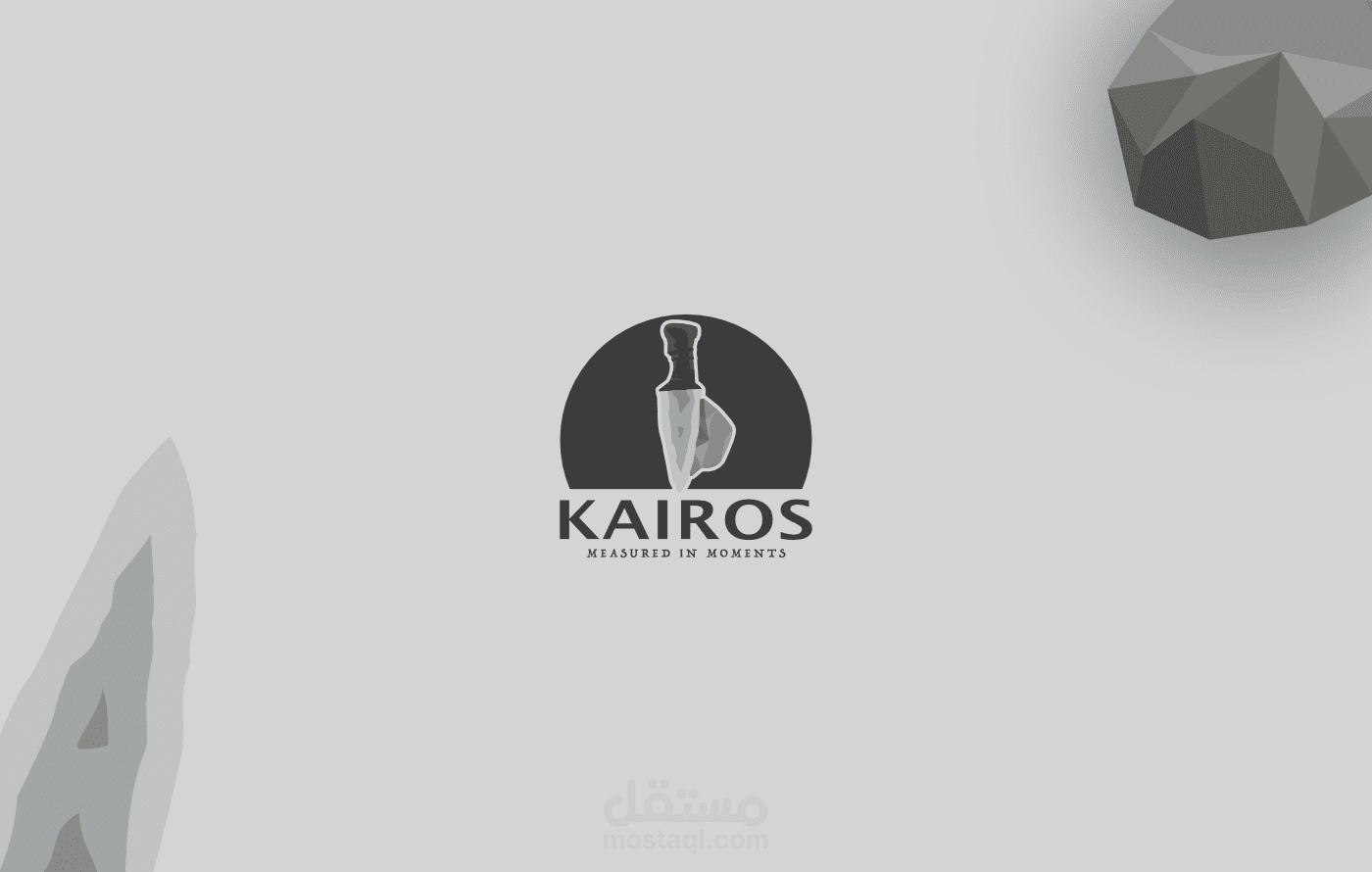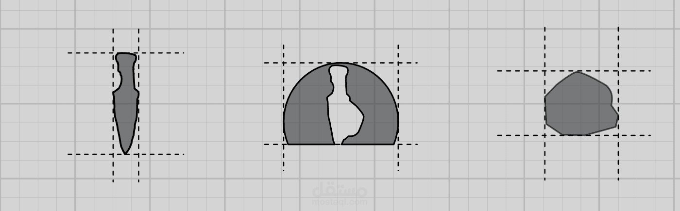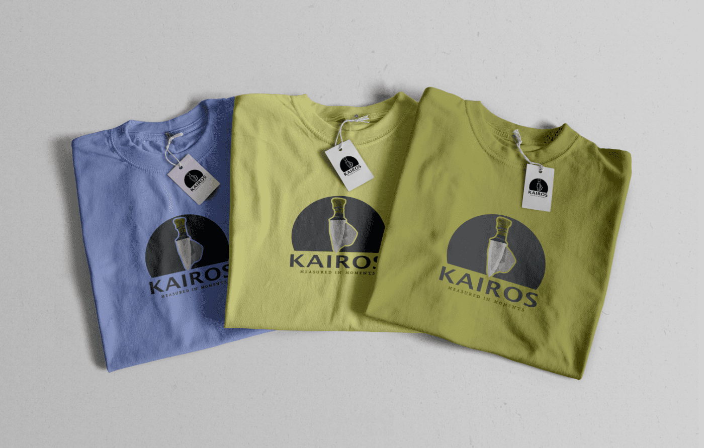 طلب الزبون استعمال الحجر والخنجر القديمين التابعين للعصر الحجري في انشاء لوغو للقمصان وكان جد راضي على النتيجة