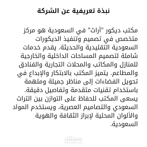 مكتب اراث للديكور بالمملكة العربية السعودية