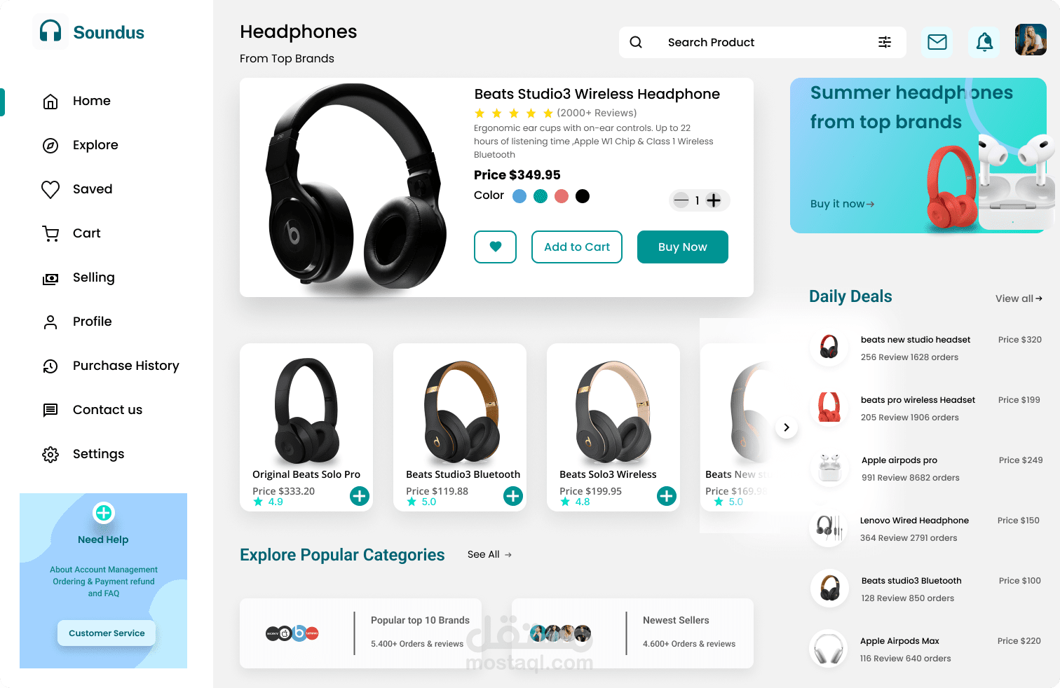 مرحبًا ، في هذا التصميم ، قمت بعمل لوحة تحكم للتجارة الإلكترونية لسماعات الرأس.