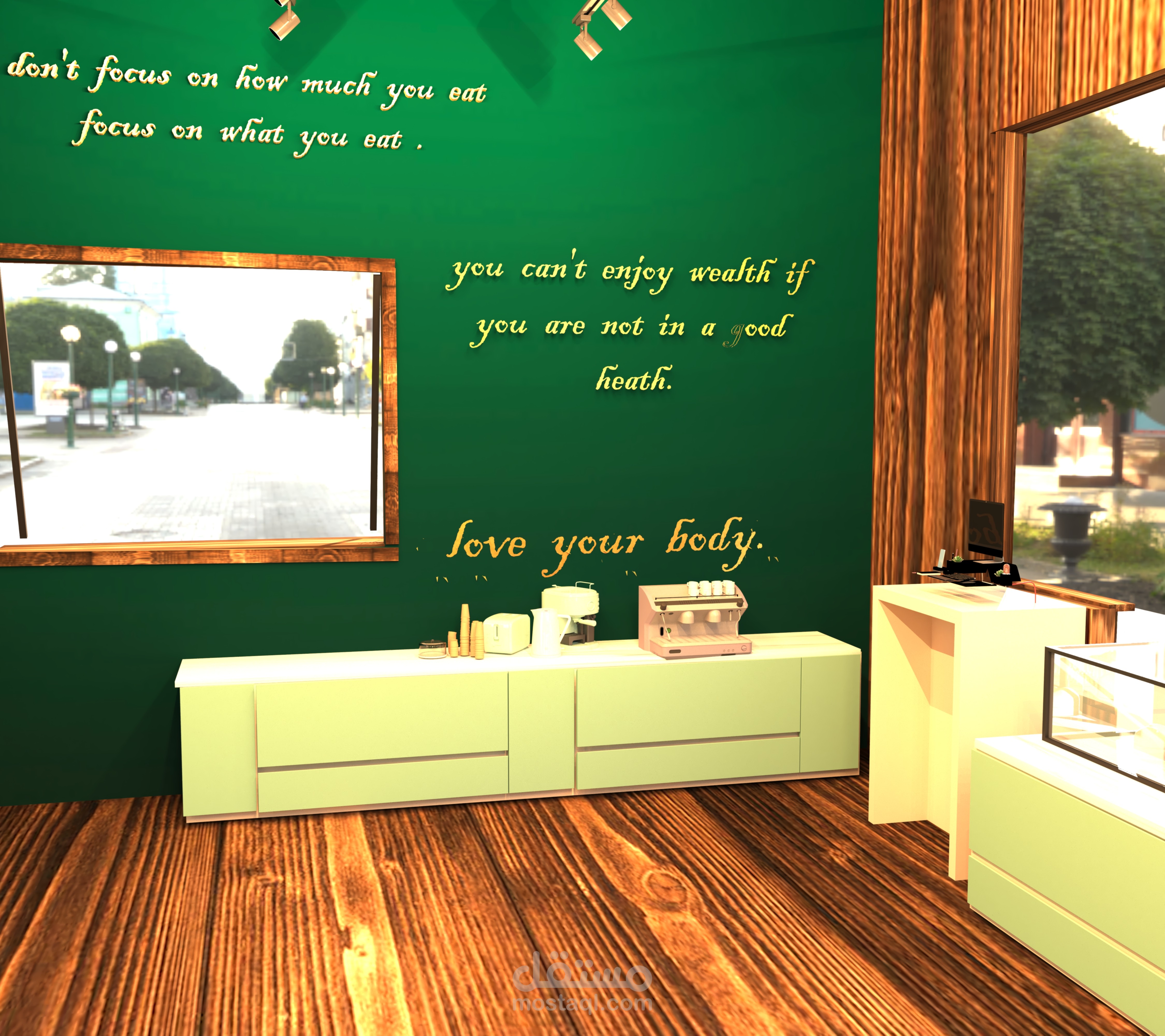 عبارة عن booth يبيع الاكل الصحى فى النوادى