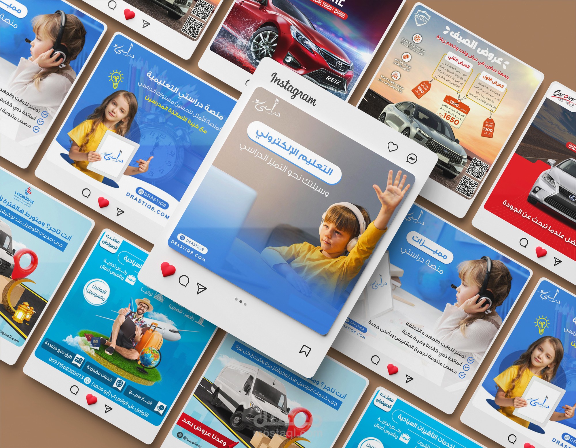 هنا تجد نماذج من اعمال في تصميم السوشل ميديا في مختلف المجالات ومختلف العملاء.