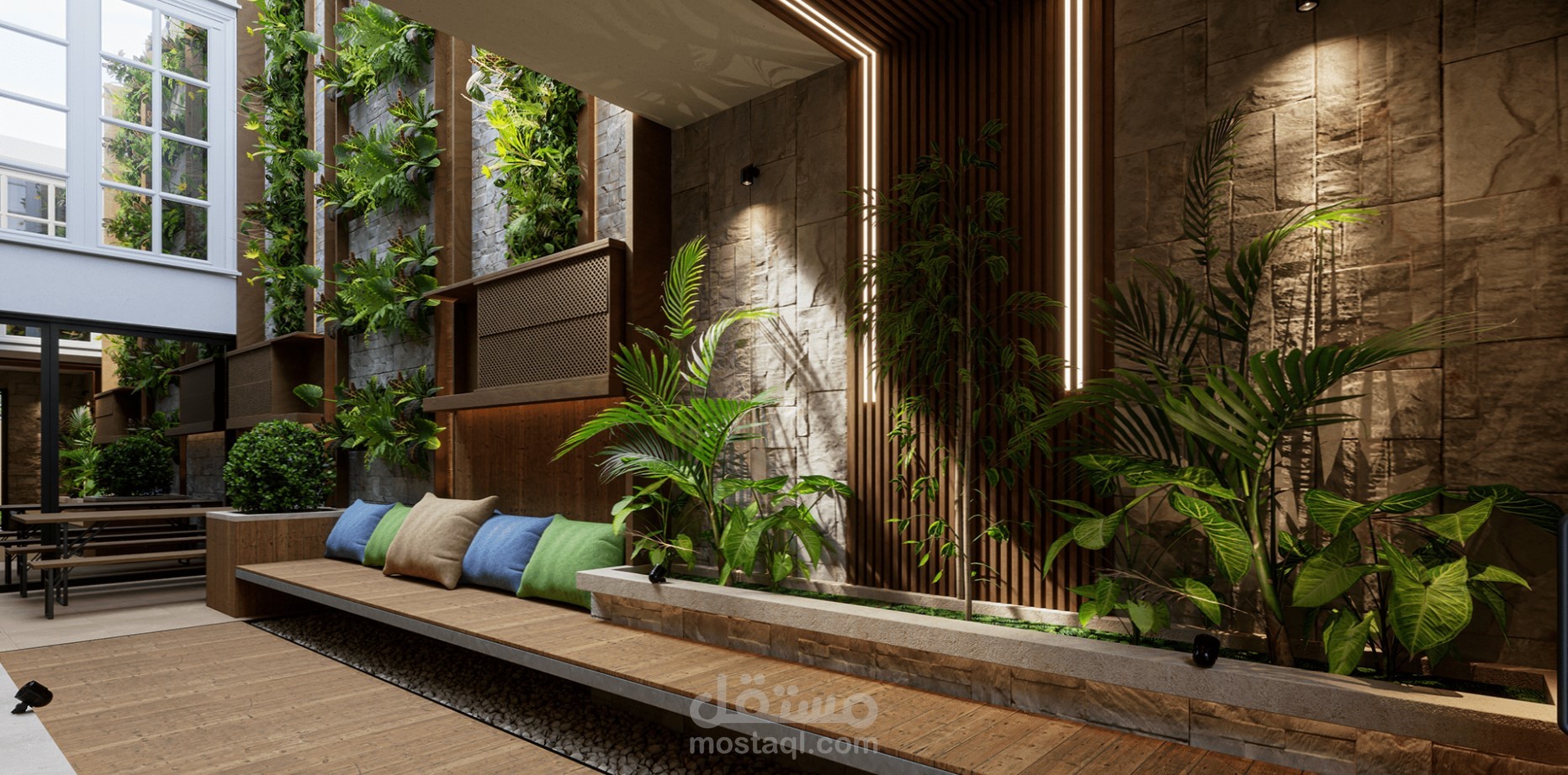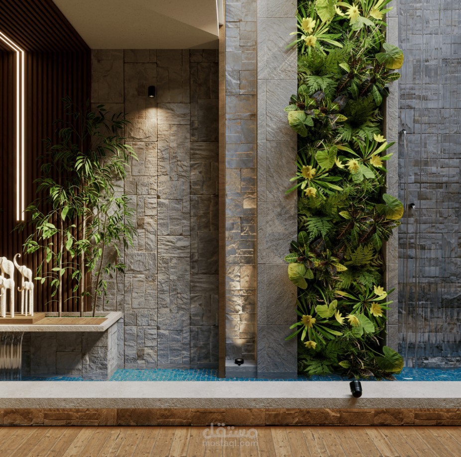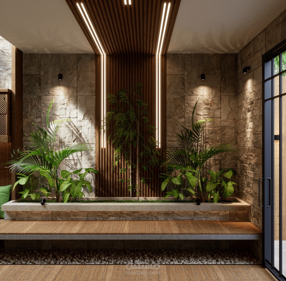 تصميم حديقة داخلية باستخدام ال green walls لإضافة عنصر الطبيعة في المساحات الضيقة