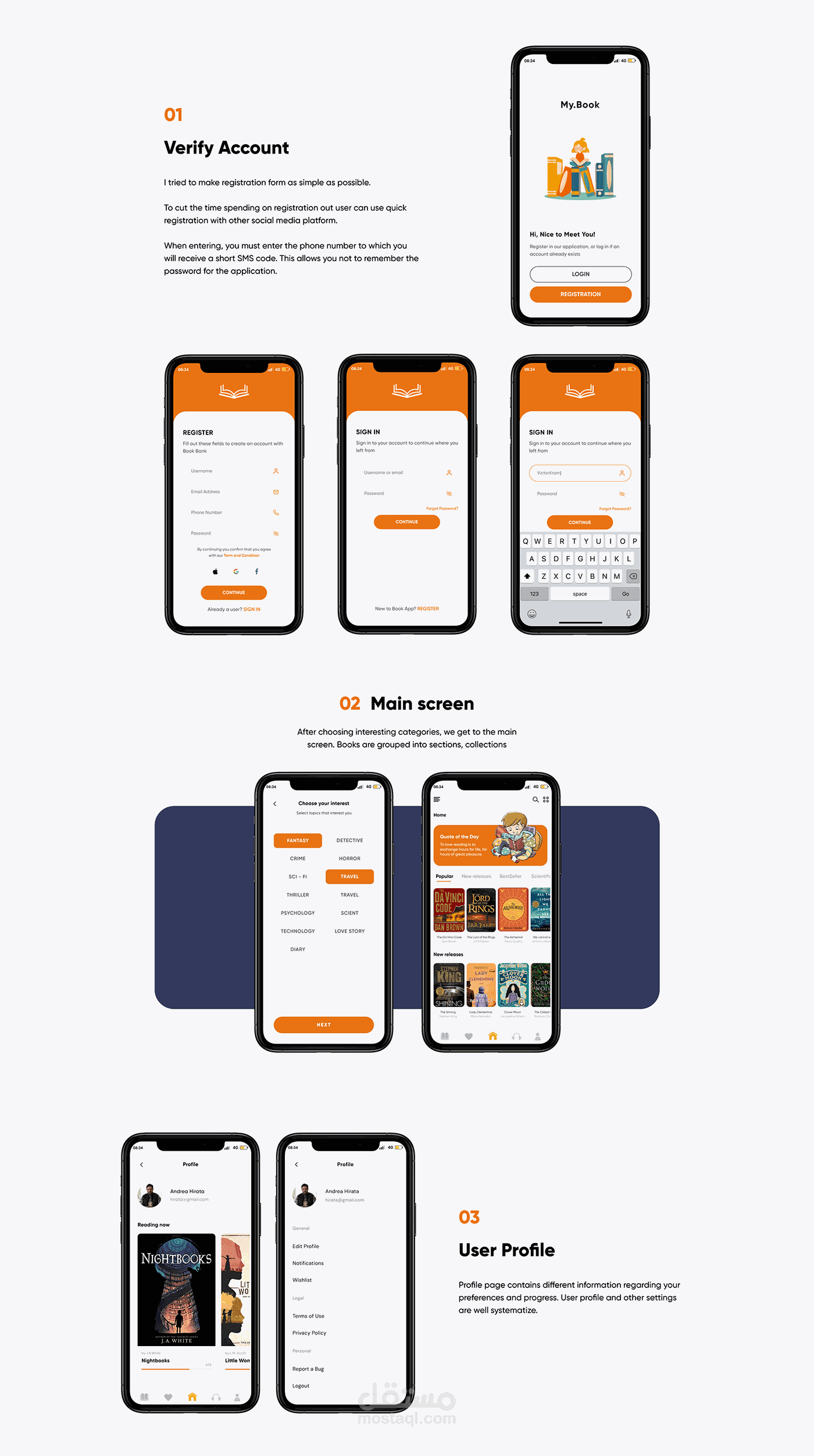 فكرة عمل التطبيق هي قراءة الكتب والبحث عن الكتب المفضلة ولكن تعتبر القراءه في التطبيق مريحة حيث يوفر لك التطبيق الوان مناسبة لراحة العبين مع وضوح الكلام